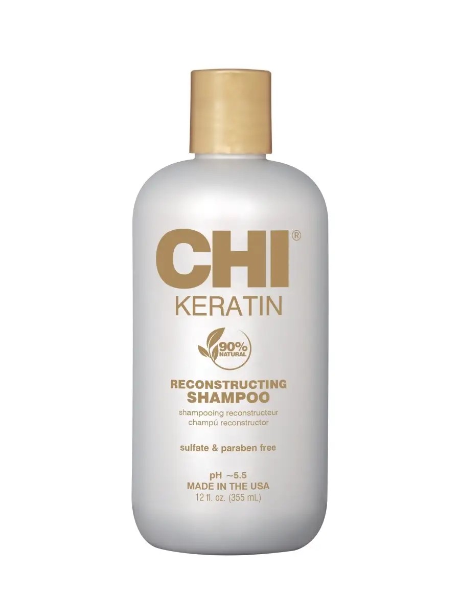 CHI Keratin Keratin Shampoo gently cleanses without drying out or over-drying hair. Keratin effectively restores hair structure and promotes the regeneration of damaged areas. The formula is 90% natural and is SLS and SLES-free. Jojoba and argan oils penetrate deep and provide a comprehensive effect. They restore strength, shine, and elasticity to hair. The oils also nourish the hair with beneficial fatty acids, which help combat breakage and split ends. HOW TO USE: Apply shampoo to damp hair and massage until lather appears. Rinse thoroughly. Repeat if necessary. *** The CHI Keratin Keratin Repair line is specially designed to restore and protect damaged and brittle hair. It is especially effective after coloring and other chemical treatments. Keratin is an essential building protein. It maintains hair strength and health, adding smoothness, shine, and uniformity. The formula also contains argan and jojoba oils, vitamin B5, and carob seed extract. These ingredients provide a comprehensive effect and leave hair looking well-groomed. CHI Keratin products help combat damage and restore hair's natural beauty. They provide a comprehensive, multifunctional effect. The result is elastic, moisturized, shiny, and soft hair.
