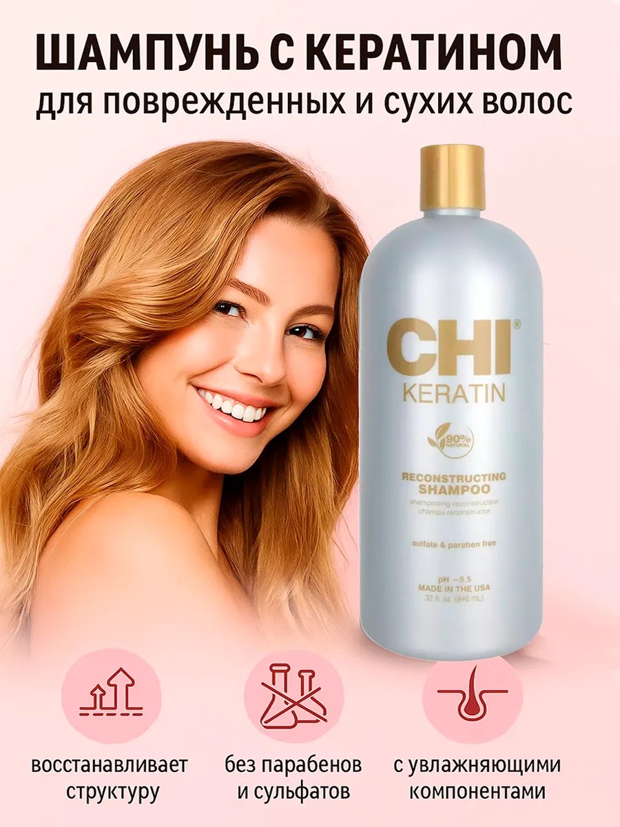 CHI KERATIN Shampoo — это профессиональный шампунь для волос, разработанный для восстановления и глубокого ухода за поврежденными и сухими волосами. Формула шампуня, обогащенная кератином, деликатно воздействует на волосы, восстанавливая их структуру и возвращая им естественный блеск. Шампунь CHI KERATIN Shampoo объемом 946 мл станет незаменимым помощником в ежедневном уходе за волосами, обеспечивая бережное очищение без пересушивания. Благодаря своим восстанавливающим свойствам, шампунь CHI KERATIN Shampoo идеально подходит для всех типов волос, в том числе для непослушных и окрашенных. Он эффективно очищает волосы от загрязнений, при этом сохраняя цвет и защищая его от вымывания. Регулярное использование шампуня CHI KERATIN Shampoo поможет вам вернуть волосам силу, мягкость и здоровый вид. Шампунь CHI KERATIN Shampoo — это идеальное решение для тех, кто хочет подарить своим волосам профессиональный уход в домашних условиях.