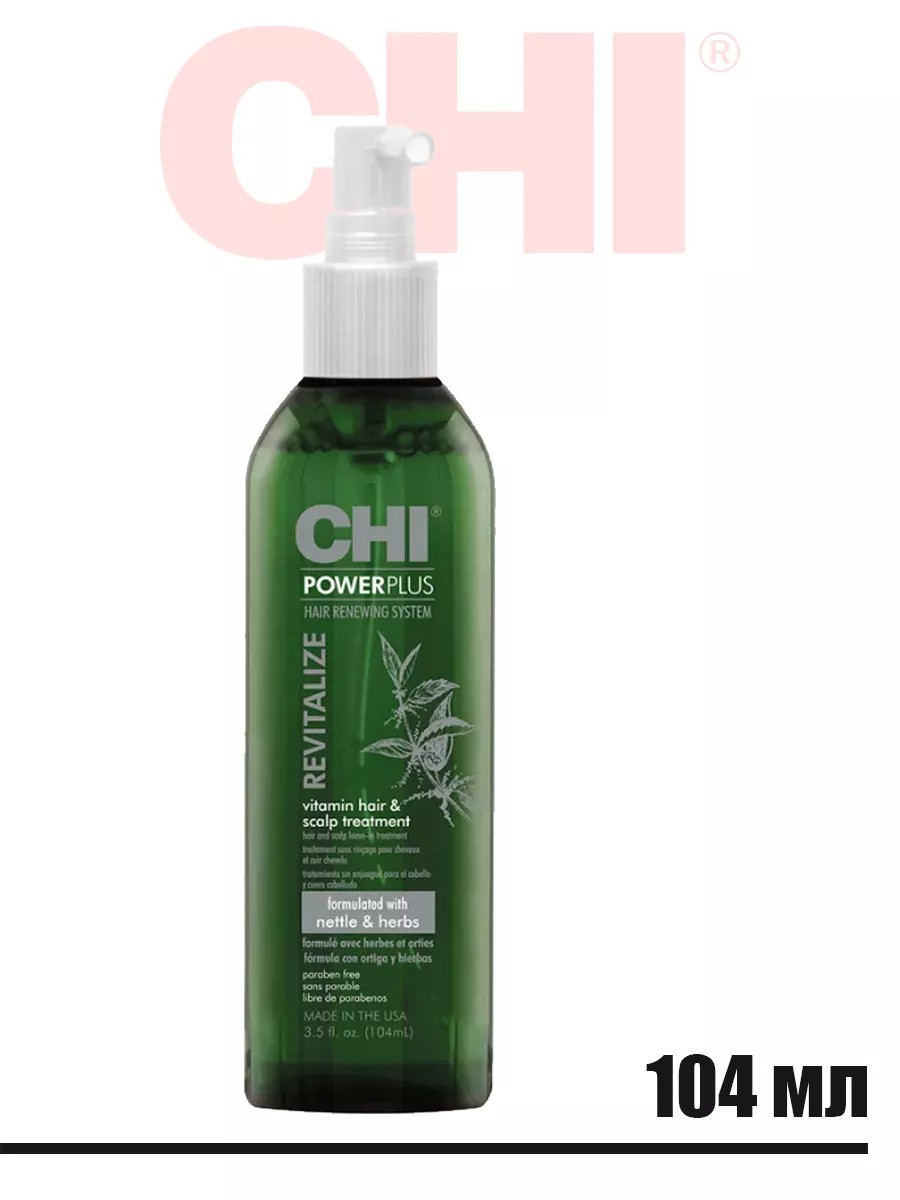 CHI Power Plus усовершенствованный витаминный уход с растительными экстрактами стимулирует кожу головы, способствуя росту более сильных и густых волос. Ухаживающий спрей с экстрактами крапивы и красного клевера и набором различных витаминов обеспечивает надежный уход за кожей головы. Продукт успокаивает, освежает и стимулирует кожу головы, помогая росту более красивых и густых волос. pH 5,0-6,0. Продукт универсален как для мужчин, так и женщин с редеющими волосами, которые желают бережно ухаживать за кожей головы и придать густоту и объем своим волосам. Главные преимущества: Способствует здоровой коже головы. Эффективный витаминный комплекс. Укрепляет и защищает от ультрафиолетового излучения. Применение: Нанесите непосредственно на кожу головы и равномерно распределите массажными движениями кончиков пальцев. Не смывайте. Используйте как часть курса или для ежедневного ухода. О линии CHI Power: Омолаживающая система ухода за волосами, специально разработанная для ухода за волосами и кожей головы. Здоровый скальп является основой красивых волос. Продукты линии очищают, питают и омолаживают кожу головы, максимально увлажняя ее. волосы становятся объемными, более динамичными и здоровыми. Система восстановления волос CHI Power Plus содержит крапиву, красный клевер и лечебные травы, которые питают, уменьшают раздражение и сухость кожи головы, помогают сбалансировать и улучшить состояние кожи головы.