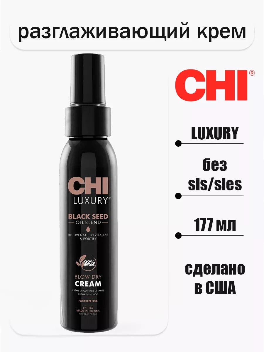 | Комплектация | CHI LUXURY Seed Oil Blow Dry Cream Разглаживающий крем для укладки волос 177мл |