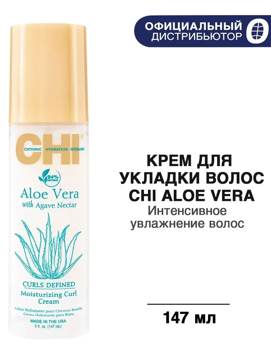 Крем для укладки CHI Aloe Vera дарит выраженный увлажняющий эффект и дисциплинирует кудри. Отличительная особенность этого крема заключается в том, что он активно ухаживает за волосами. Средство бережно и надежно фиксирует волосы, не загрязняя их. Имеет легкую текстуру и быстро впитывается. Делает волосы упругими и сильными, дарит безупречную гладкость и помогает поддерживать естественную форму завитков на кудрявых волосах. В составе содержится 94% натуральных компонентов. В составе присутствует алоэ – растительный компонент, который эффективно увлажняет волосы. Результат – здоровые и сияющие локоны, которые сохраняют форму в течение всего дня. Применение: Нанести необходимое количество крема на ладони и равномерно распределить по длине на влажные волосы. Высушить естественно или при помощи фена с диффузной насадкой на низкой скорости. -Линия CHI Aloe vera направлена на интенсивное увлажнение, бережный уход и поддержание естественной красоты волос. Она объединяет заботу природы и современные технологии. Дарит выраженное увлажнение и отлично подходит даже для очень сухих, кудрявых и вьющихся волос. Средства помогают сформировать и подчеркнуть естественный завиток. Продукты линии предотвращают спутывание, ломкость и повреждения, дарят мягкость и блеск. Сок алоэ вера и нектар агавы увлажняют и защищают волосы и кожу головы от негативного внешнего воздействия, придают эластичность и однородность. Волосы обретают здоровый, ухоженный вид.
