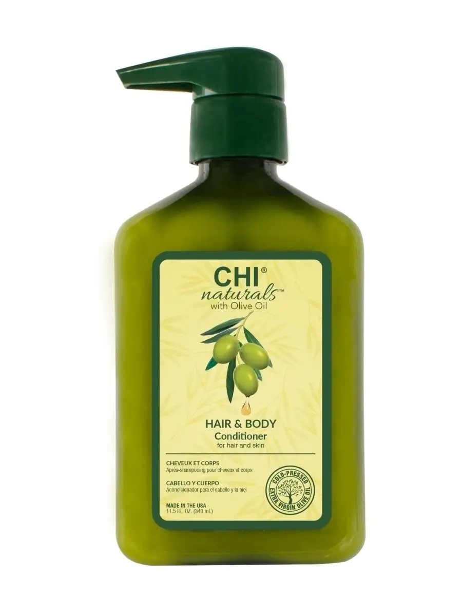 CHI Naturals with Olive Oil Conditioner prevents tangling and makes combing easier. It nourishes and moisturizes hair from the inside out, protecting it from dryness. It helps maintain the rich color of natural hair without fading the color of dyed hair. The conditioner can be used as a body lotion. When used as a body lotion, the conditioner softens the skin, leaving it smooth and moisturized, providing comfort and well-groomed care. The product contains 98% natural ingredients. APPLICATION After shampooing, apply the desired amount of conditioner to your palms and distribute evenly through damp hair, starting from mid-lengths to the ends. To use as a body lotion, apply and massage into damp skin after cleansing. Rinse. Towel dry skin and hair. *** The CHI Naturals with Olive Oil line is a combination of innovative technologies and natural ingredients. These versatile products are great not only for hair but also for the body. The eco-friendly packaging is created with care for nature. This line is suitable for dry, damaged, dull, and weakened hair. It is free of sulfates (SLS and SLES), parabens, and GMOs. The key ingredients—olive oil and flower extracts—provide comprehensive yet gentle care. Olive oil has been used in cosmetology for centuries. It restores hair's natural strength, imparts elasticity and shine, and strengthens weakened and damaged areas. Chamomile, silk, calendula, green tea, and other plant extracts nourish hair, giving it a natural, healthy look. Experience the care of nature with Naturals with Olive Oil!