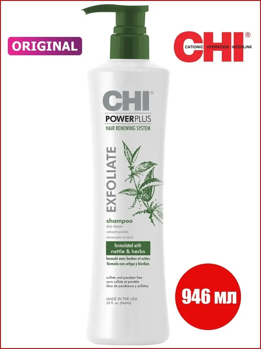 CHI POWERPLUS Exfoliate Shampoo - Отшелушивающий шампуньСпециально разработан с натуральными компонентами для отшелушивания, детоксикации и очистки волос и кожи головы путем удаления скоплений кожного жира и загрязнений и подготовки волос для дальнейшего ухода и восстановления. pH: 5.0-6.0.