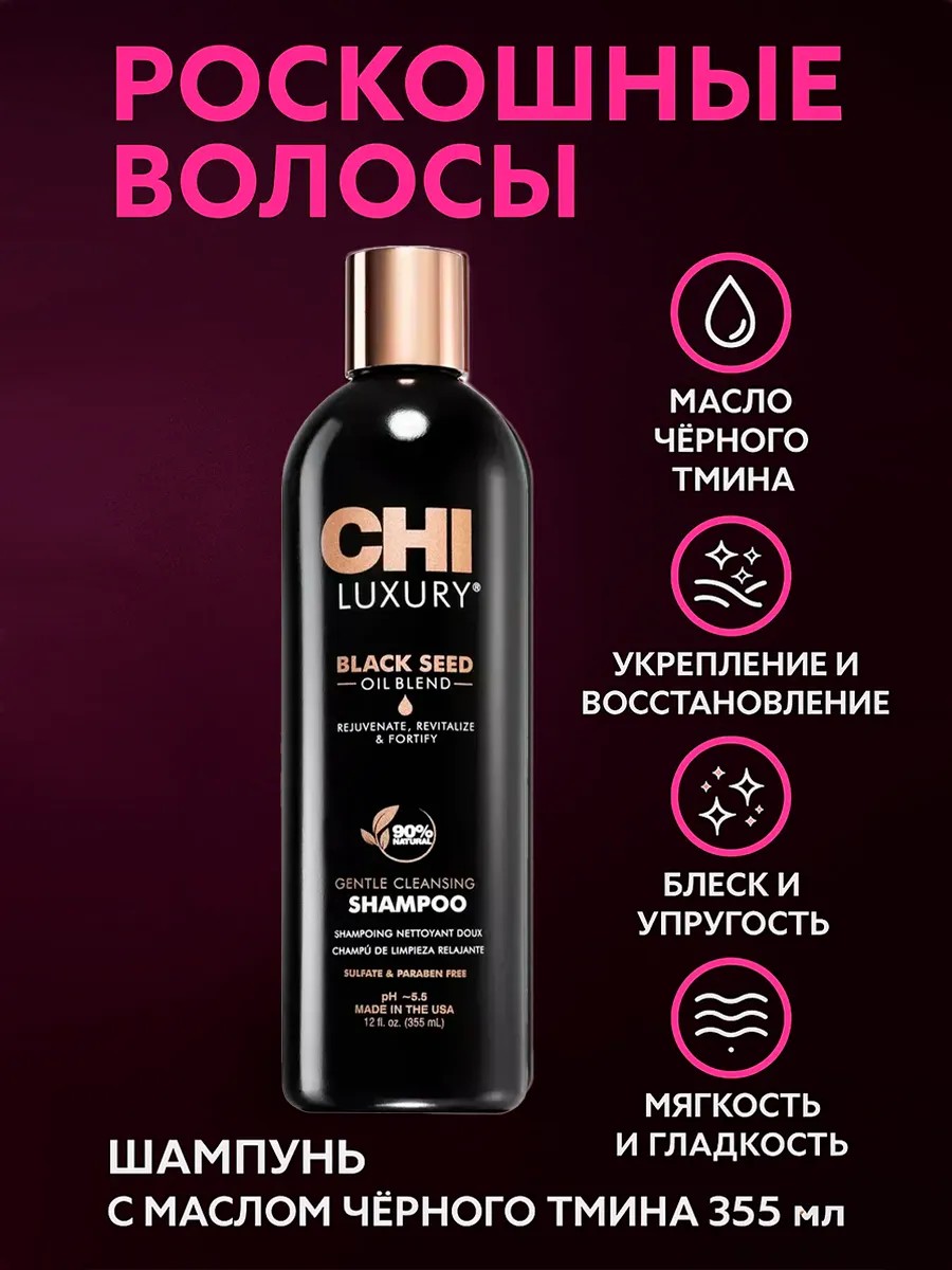 | Комплектация | CHI LUXURY Back Seed Oil Shampoo Восстанавливающий шампунь с маслом черного тмина 355 мл |