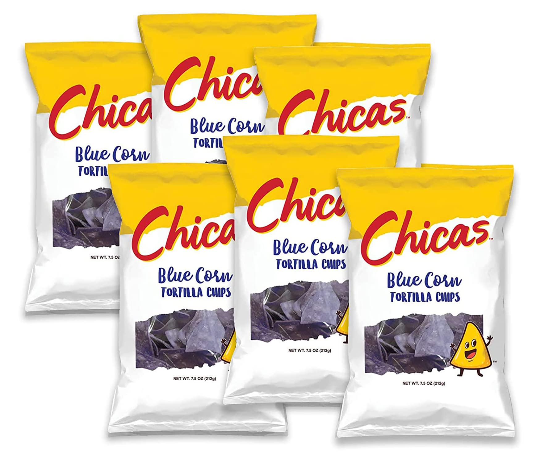 Chicas Tortilla Chips, Blue Corn Tortilla Chips, Lightly Seasoned with Sea Salt, Gluten Free, Vegan & Non-GMO, For Dips, Spreads & More, 7.5-Ounce Bag (Pack of 6) Blue Corn 7.5 Ounce ,Pack of 6