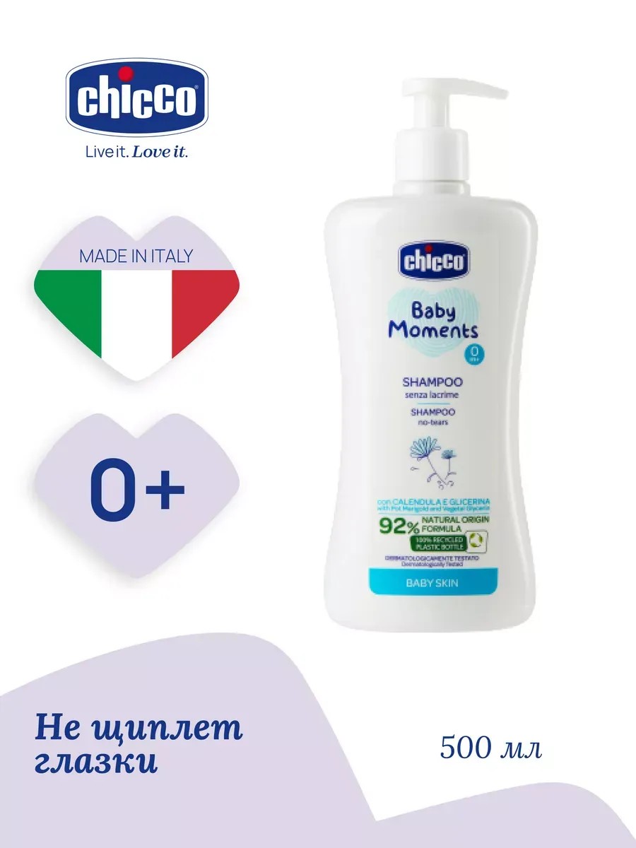 CHICCO Детский шампунь Baby Moments без слёз 0 мес+, 500мл