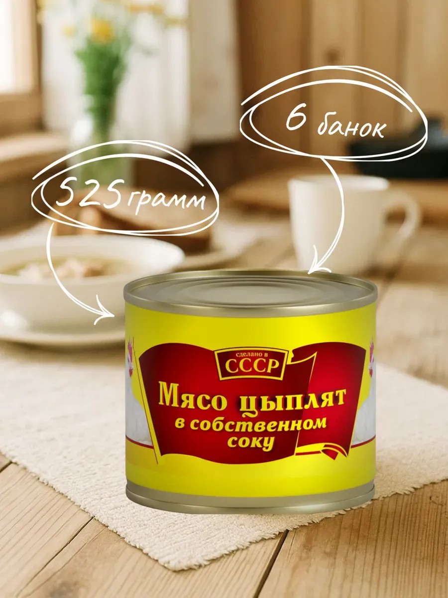 СССР Мясо цыпленка в собственном соку "СССР" 525 гр. ГОСТ - 6 шт.
