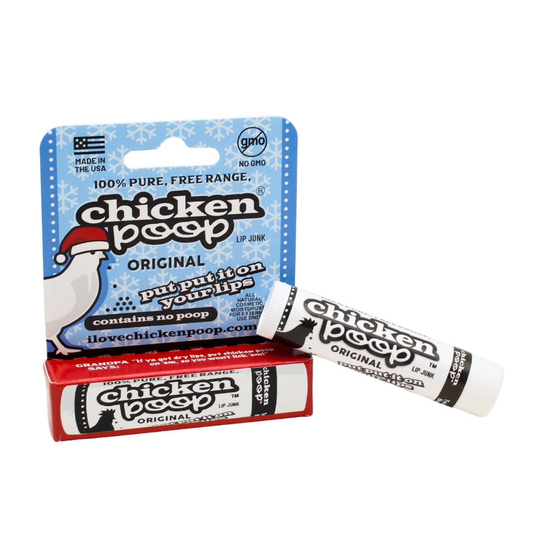 Soft lips, festive fun, and a name they'll never forget. The Chicken Poop Holiday Lip Balm 5-Pack includes five tubes of the Original flavor — a smooth lavender blend made with beeswax, avocado oil, and jojoba. Despite the name, there's no actual poop — just a clever twist that makes this balm a memorable gift and a seasonal favorite. Whether you're wrapping it up for friends, adding it to a white elephant exchange, or keeping a tube in every coat pocket, this holiday edition delivers dependable moisture with a playful spirit. Made in the USA and free from parabens and petroleum, it's a clean, simple formula that works.