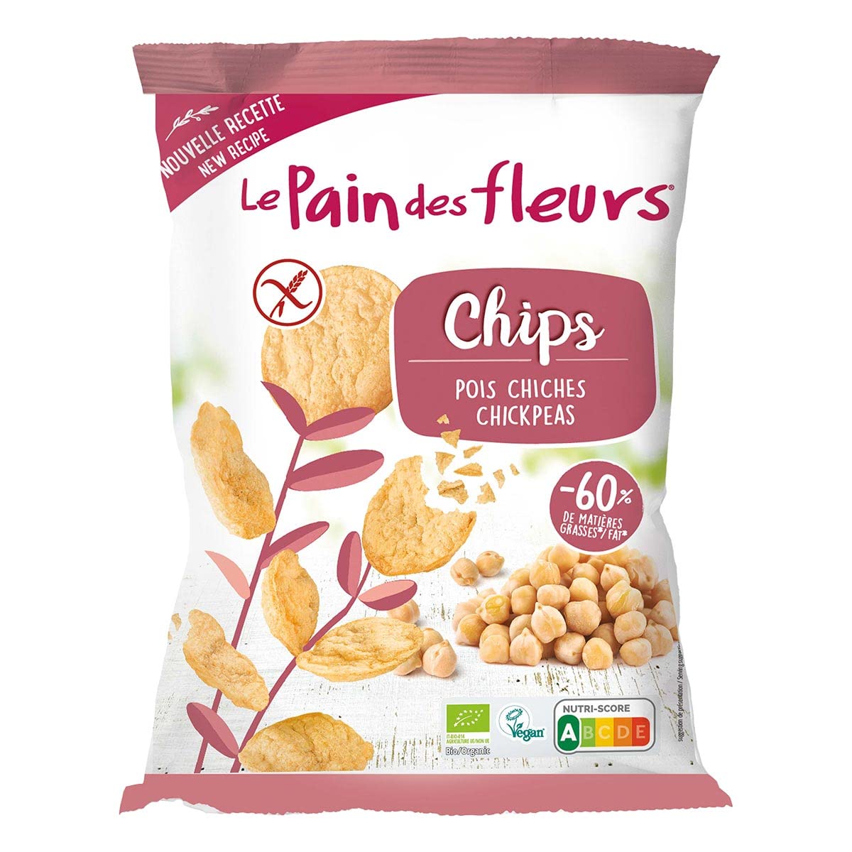 Le Pain Des Fleurs. 50g Chickpea Chips. Gluten-Free Snacks. Gluten-Free Diet Products. Savory Groceries.Le Pain Des Fleurs. Chips aux pois chiches 50g. Biscuits apéritifs sans gluten. Produits pour régime sans gluten. Epicerie salée.