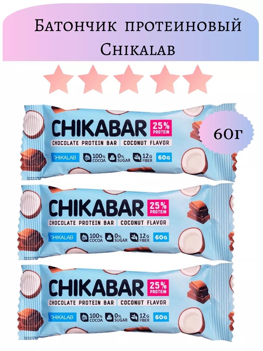 Chikalab Батончик протеиновый Кокос с шоколадной начинкой, 60г, 3шт