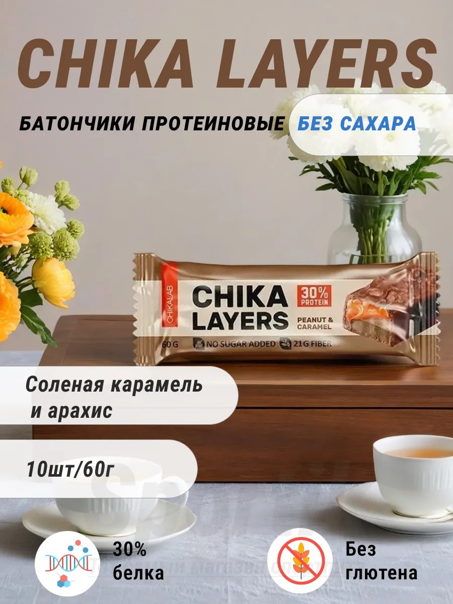 Chikalab Chika layers батончики арахис карамель без сахара - 10шт