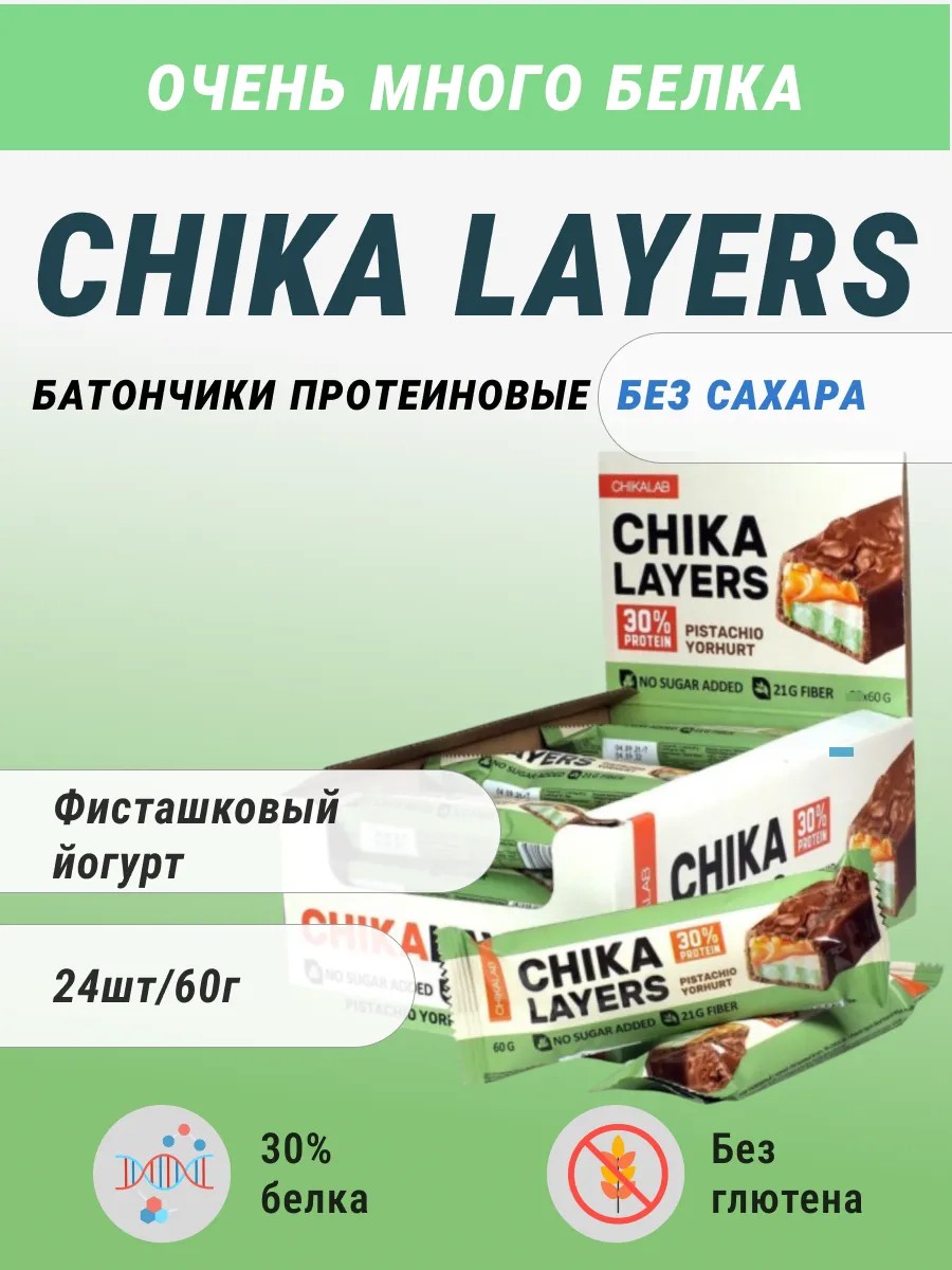Chikalab Chika layers протеиновые ПП батончики без сахара 60гр - 24шт