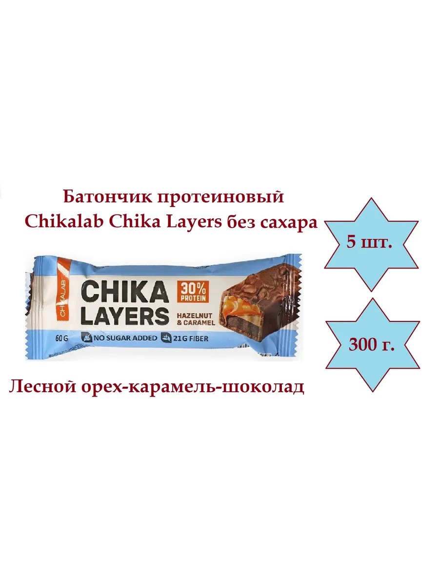 Полное наименование товараБатончик протеиновый Chikalab Chika Layers Лесной орех-карамель-шоколад без сахара