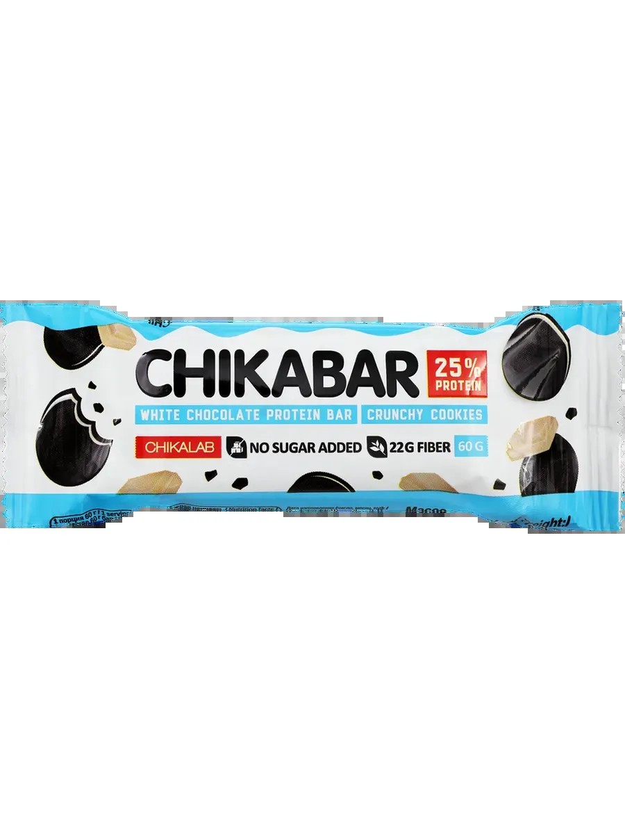 The CHIKALAB protein bar with a crispy cookie filling and glazed coating is a healthy and delicious treat that will quickly satisfy hunger and replenish energy. It can be enjoyed as a dessert with tea or coffee, or as a snack during a walk or long trip. The bar is coated in a layer of soft milk chocolate, adding an extra touch of flavor.