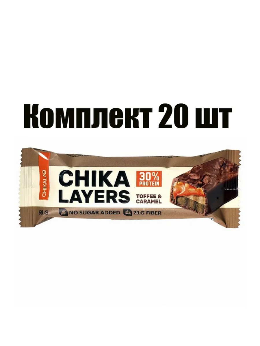 CHIKALAB glazed protein bar with salted caramel and peanut flavored filling, 60 g, 20 pcs. Five-layer bars from Chikalab CHIKA LAYERS are a fragrant layer of thick caramel and nuts combined with layers of protein and praline, the bar is covered with delicate milk chocolate WITHOUT SUGAR. CHIKA LAYERS is a healthy snack containing 18 grams of protein per serving, 21 grams of additional fiber per serving. Why CHIKA LAYERS BARS: - natural products are used; - provide a supply of protein and carbohydrates; - convenient to use in the gym or outside the home; - help to lose weight; - increase muscle mass; - deliver the necessary energy to the body; - positive effect on the gastrointestinal system: - normalizes blood sugar levels; - a source of vitamins, especially group B.