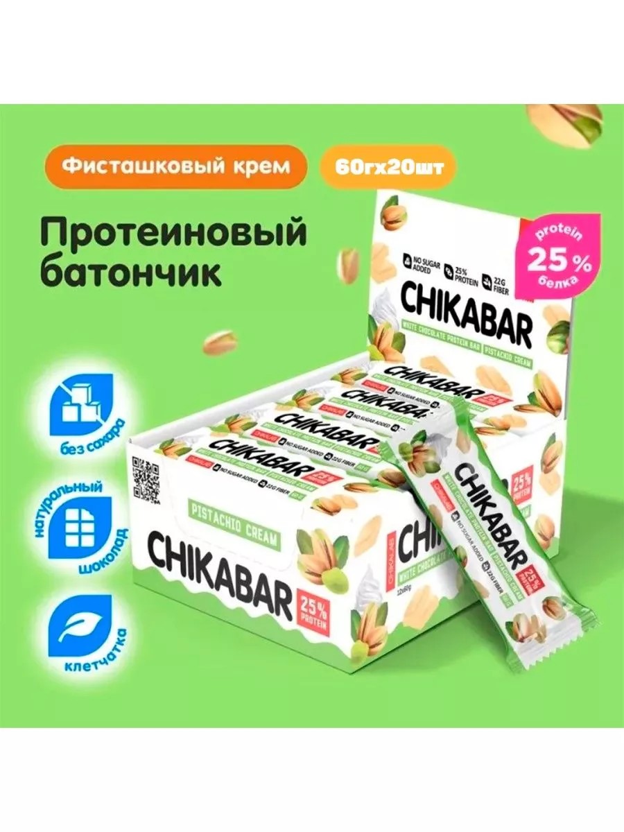 CHIKALAB БАТОНЧИК протеиновый CHIKABAR 60 г. - 20 шт (Фисташка)