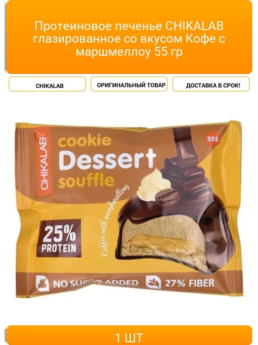 | Комплектация | Протеиновое печенье CHIKALAB глазированное со вкусом Кофе с маршмеллоу 55 гр |