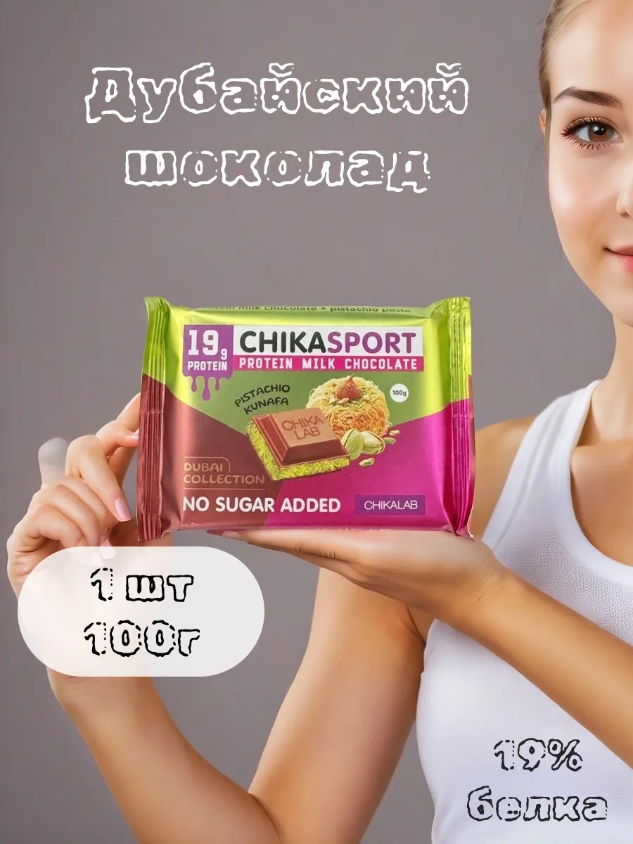 Chikalab Протеиновый Дубайский шоколад без сахара, 1шт, 100г