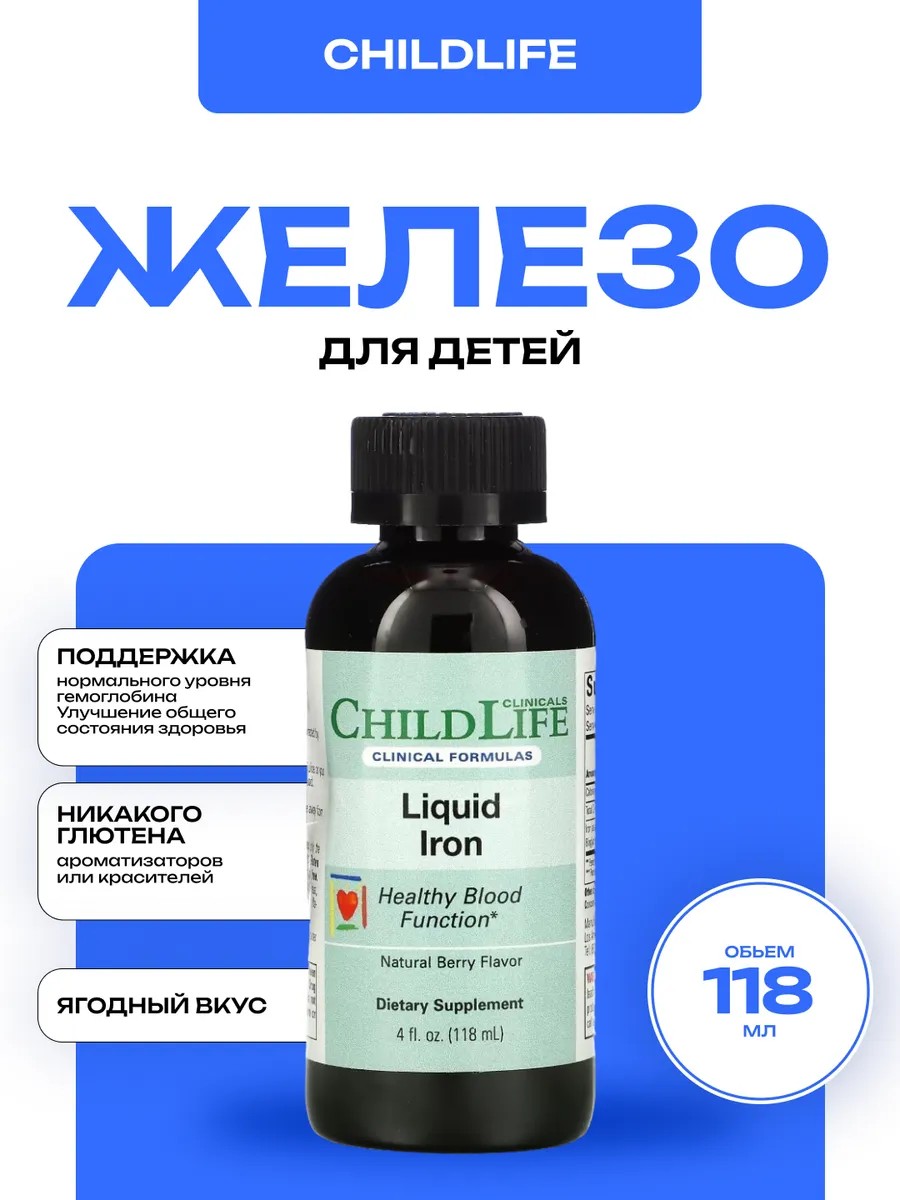 ChildLife Clinicals Liquid Iron - это высококачественный продукт, специально разработанный для поддержки здоровья и благополучия детей. Этот жидкий препарат содержит детское железо, которое является важным компонентом для правильного развития и роста ребенка. Железо играет ключевую роль в образовании гемоглобина, который отвечает за транспортировку кислорода в организме.