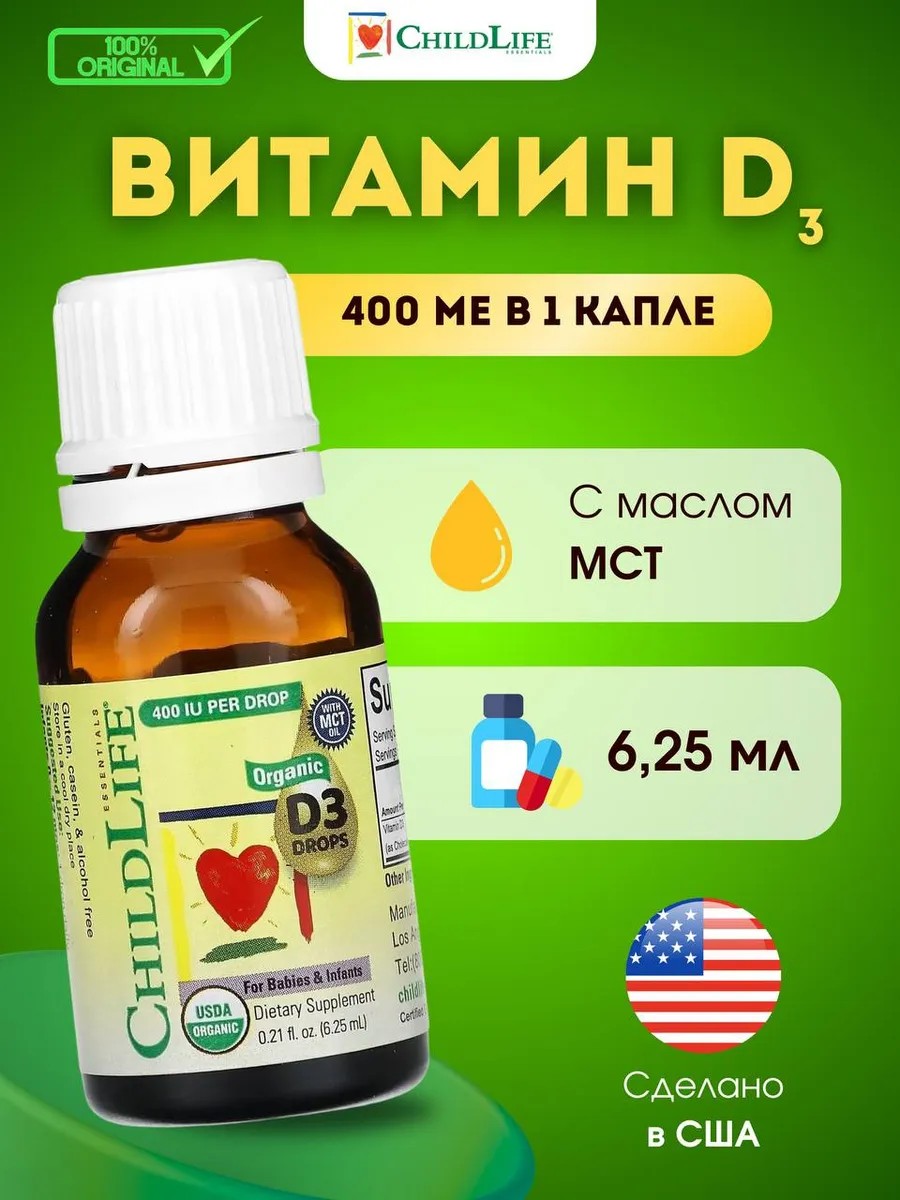 Американские капли айхерб фирмы чайлд лайф органического vitamin D 3 ChildLife Essentials для новорожденных можно давать с рождения и продолжать в течение всего подросткового возраста.