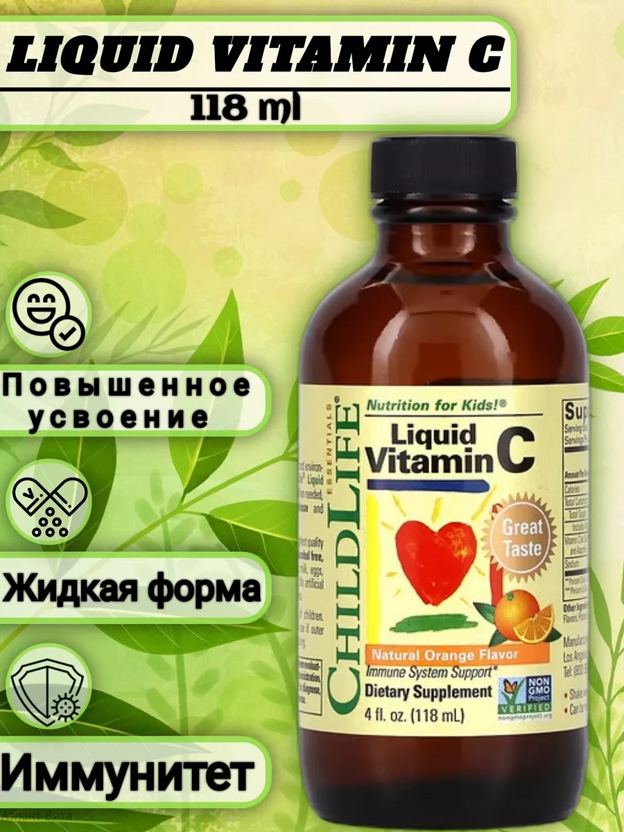 ChildLife Essentials витамин C в жидкой форме, натуральный апельсиновый вкус, 118,5 мл. Замечательный вкус, поддержка иммунной системы, не содержит глютена, казеина и спирта! Витамин C от Child Life - это жидкость с приятным натуральным апельсиновым вкусом, которую с удовольствием будут принимать дети любого возраста.