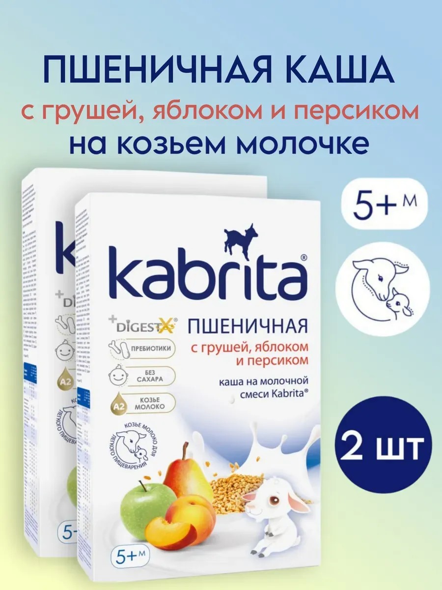 Каша пшеничная с грушей, яблоком и персиком на козьем молочке Kabrita – это идеальное решение для кормления детей с 5 месяцев. Особое внимание уделено составу продукта: адаптированная молочная смесь на основе козьего молока, обогащенная пребиотиками, витаминами и минеральными веществами, обеспечивает полноценное питание с первых дней жизни. Благодаря наличию груши, яблока и персика, каша имеет приятный сладковатый вкус, а отсутствие сахара делает её безопасной для здоровья ребенка. Выбор козьего молока вместо коровьего делает эту кашу более переносимой для детей с непереносимостью лактозы.