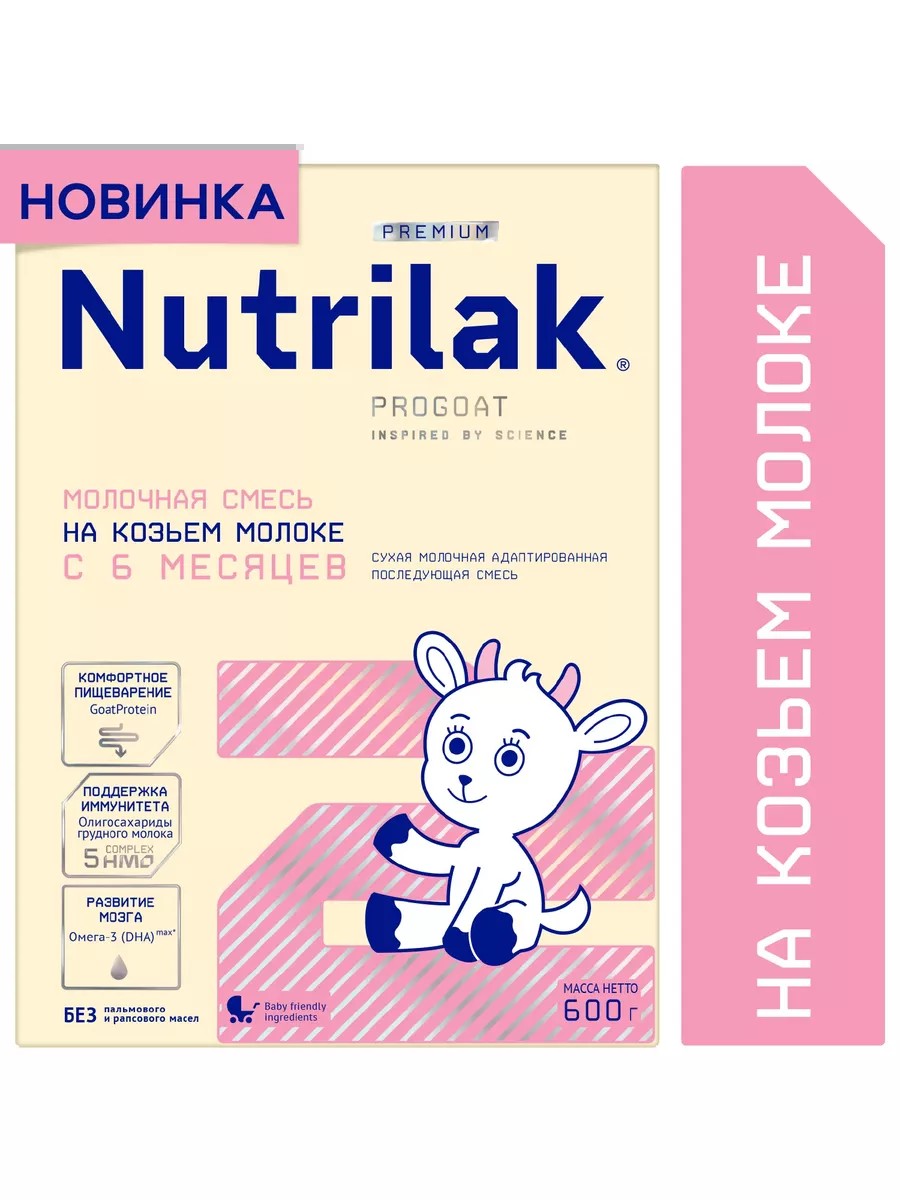 Nutrilak 2 Premium PROGOAT* произведен на основе отборного козьего молока, способствует комфортному пищеварению и развитию иммунной системы, имеет сбалансированный состав для полноценного роста и интеллектуального развития малыша.