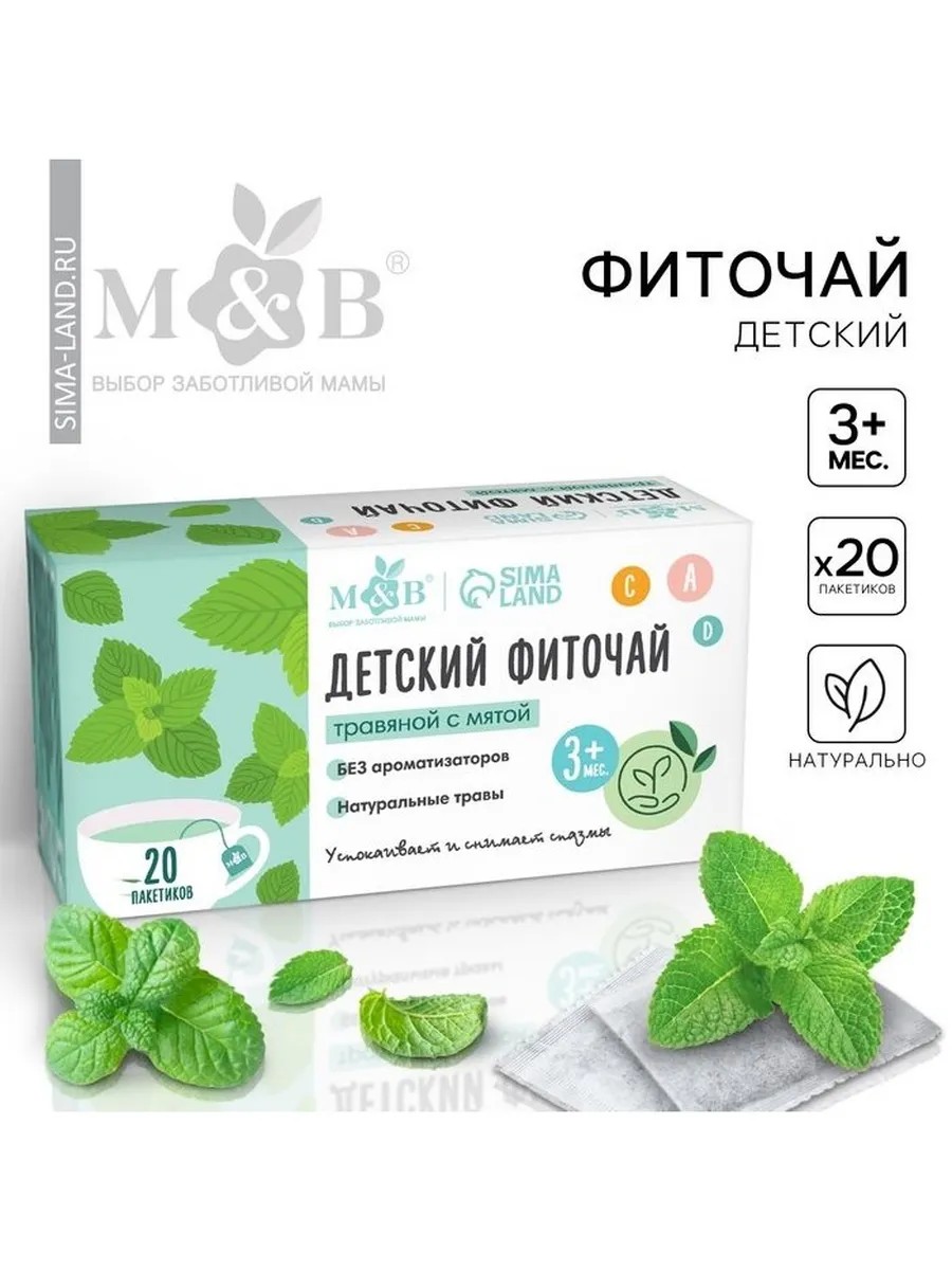 Детский фиточай M&B, травяной с мятой, 3+ мес, 20 п
