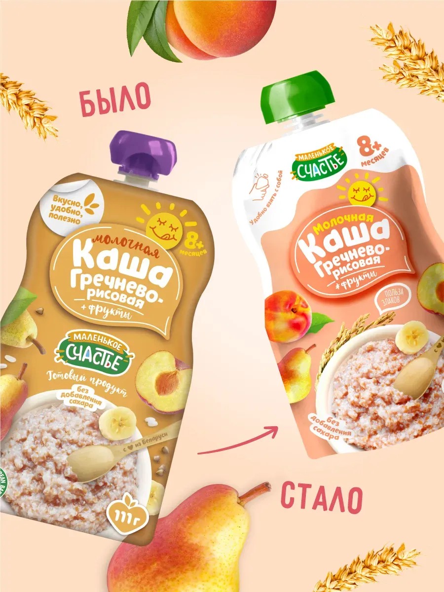 Вкусная детская каша Маленькое счастье – это идеальное питание для малышей с 8 месяцев. Сделано в Беларуси. Молочная каша представляет собой жидкую смесь с натуральными фруктами, без сахара и искусственных добавок. Этот продукт – настоящая находка для занятых родителей, которые всегда ищут легкое и полезное решение для кормления своего маленького чуда! Каша детская имеет удобную упаковку в виде пауча, что делает ее идеальным перекусом для малышей в любой ситуации. Попробуйте детское пюре в паучах от Маленького Счастья - и убедитесь, что питание вашего ребенка может быть не только полезным, но и удобным! Не нужно тратить время на готовку - эта кашка уже приготовлена и готова к употреблению. Просто откройте упаковку и дайте своему ребенку насладиться полезным и вкусным кормлением. Натуральные ингредиенты, использованные в этой детской каше, обеспечивают полноценное питание и поддерживают здоровье вашего малыша. Фрукты и молочные продукты, содержащиеся в составе, обеспечивают организм ребенка необходимыми питательными веществами для его роста и развития. Прикорм с помощью этой готовой каши станет еще одним шагом в правильном направлении для вашего ребенка! Бренд Маленькое счастье известен своей продукцией для детей, которая всегда отличается качеством и заботой о здоровье малышей. Вы можете быть уверены в том, что ваш ребенок получает только самое лучшее, когда у вас есть наша каша! Молочная каша – это не только вкусно, но и полезно. Ведь каждая упаковка содержит все необходимое для здорового роста и развития ребенка. Каждая порция создана для спокойного малыша: нашему продукту не занимает пространства в вашей сумке или кофре. Пользуйтесь им на прогулке, за городом или в поездке — он поможет вам насладиться 10 минутами тишины, так нужной как ребенку, так и взрослому.