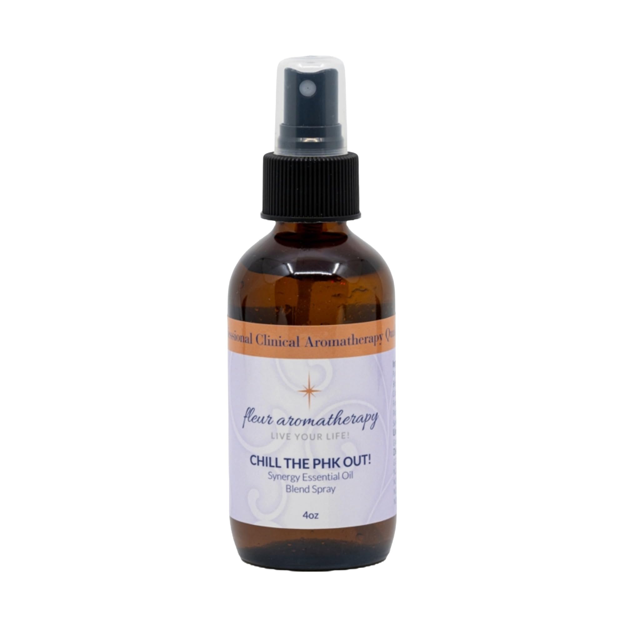 Take a deep breath and restore your balance with Fleur Aromatherapy's Chill Out Synergistic Essential Oil Blend Spray. Expertly crafted with Bergamot FCF, Cedarwood Atlas, Frankincense, Patchouli, and Sandalwood, this grounding and relaxing blend is diluted to 6–8 in purified water for safe and versatile use. Simply mist onto your body, linens, yoga mat, or into the air for quick aromatherapy support wherever life takes you. Perfect for home, work, travel, or bedtime rituals, Chill Out helps create a tranquil atmosphere and supports emotional grounding throughout your day. Each oil is purity-tested and blended in small batches for professional aromatherapy quality. No Synthetics - No Pesticides - No Stretching - No Adulteration. Hand poured in the USA. FDA Disclaimer: This product has not been evaluated by the Food and Drug Administration. It is not intended to diagnose, treat, cure, or prevent any disease.Size: 4 oz Amber glass spray bottle with a fine mist sprayer for even and refreshing application. Professional Quality Safety: Purity-tested and hand poured in the USA. Professional aromatherapy quality. Woman and veteran owned business. For external use only. Avoid eyes and mucous membranes. If pregnant, nursing, under medical care, or taking medication, consult a professional before use. Keep out of reach of children and pets. Supports Grounding Relaxation: Designed to ease stress, promote emotional balance, and set a tranquil mood at home, work, or on the go. Versatile Use: Mist onto your body, linens, yoga mat, or into the air to create an instant calming and grounding atmosphere. Pre-Diluted Ready-to-Use Aromatherapy Spray: Expertly blended with 100 pure Bergamot FCF, Cedarwood Atlas, Frankincense, Patchouli, and Sandalwood essential oils in purified water for safe topical and air application.