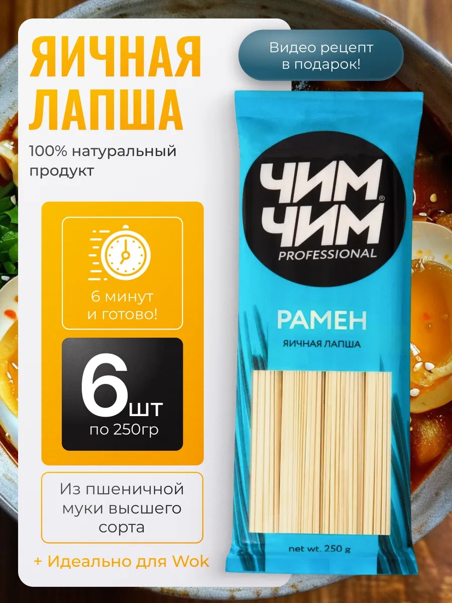 Чим-Чим Лапша яичная рамен корейская 6шт по 250г