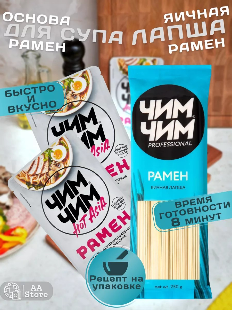Чим-Чим Паста основа для супа Рамен 2шт по 75г, яичная лапша 250г