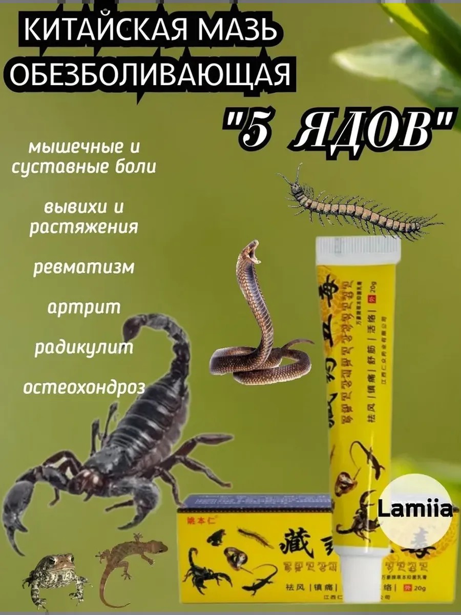 Китайская чудо мазь от болей в суставах и спине. Эффективно справляется от растяжений и спазмов в шее, обезболивающий крем надежный спутник от повреждений и воспалений. Это средство убирает отеки и синяки с кожи. Настоящее спасение от радикулита. Отлично помогает от ревматизма и остеохондроза. Если вы получили травму на тренировке, отлично поможет от ушибов или при травмах. Для более возрастной группы людей мазь подходит при невролгии в мышщах тела. Созданный крем на основе уникальных и натуральных растительх компонентов, он обеспечивает мгновенное облегчение при судорогах и помогает вернуться к активной жизни. Старый Яд Джи Тен Гао с ядом скорпиона еффективнее король кожы . Эффективно снимает боль, в области поясницы и спине. Олично справляется с артритом и ишиасом. Благодаря уникальной формуле спец мази, она также способствует облегчению при перенапряжении в мышцах шеи и в плечах, а также при онемении рук и ног. Также применять мазь можно при защемлении седалищного нерва, хорошо справляется и при грыжах в спине. Достаточно нанести на проблемные участки 1-2 раза в день и мягко втереть до полного впитывания. Органический продукт быстро впитывается и начинает действовать, принося ощутимое облегчение. Можно наносить, как на дневное, так и на ночное применение. Тем не менее, следует помнить, что данное средство не рекомендуется во время беременности, при индивидуальной непереносимости компонентов, а также на поврежденных участках кожи и слизистых оболочках. Мы понимаем важность вашего здоровья, поэтому рекомендуем проконсультироваться с врачом перед началом использования. Действие направлено на устранение болей и воспаления в мышцах и суставах, позволяя вам наслаждаться полноценной жизнью без беспокойства о дискомфорте. Доверьтесь и ощутите невероятное облегчение от неприятных ощущений, которые могут ограничивать вашу активность.