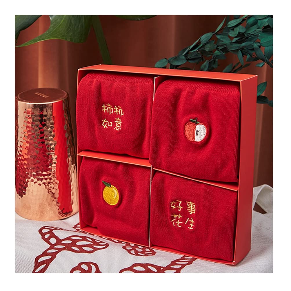 Chinese New Year Red Socks Men's and Women's Cotton Socks Sports Socks Good Luck Socks Spring Festival Gift 4 Pairs (Color : Red Size : 37-44) 37-44 Red