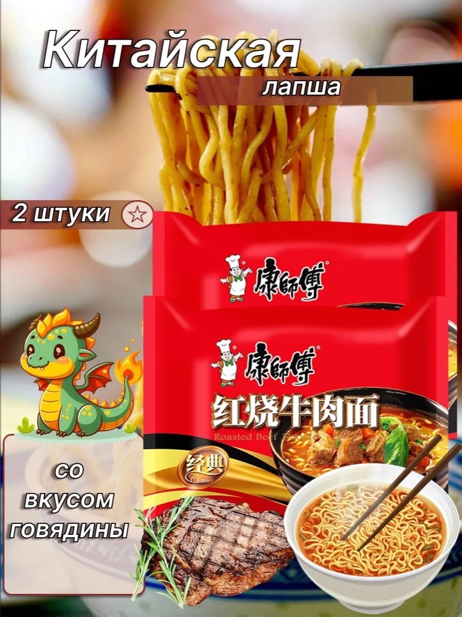 Пшеничная лапша удон рамен быстрого приготовления с тушеной говядиной. Очень вкусная и популярная лапша в Китае. Лапша быстрого приготовления имеет немного острый вкус и непередаваемый аромат китайских приправ.