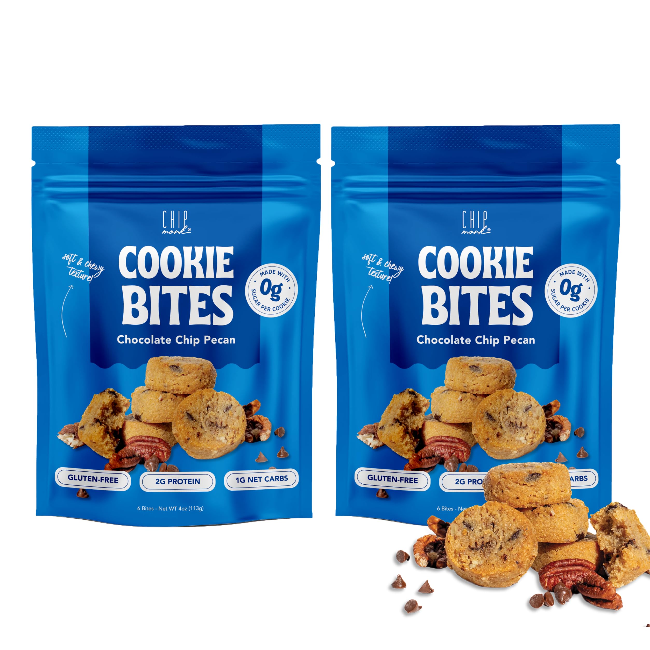 ChipMonk Keto Cookie Bites Delicious Low Carb Diabetic Friendly 1g Net Carb Gluten Free Sugar Free Keto Bites Sweetened with Allulose & Monk Fruit (Chocolate Chip Pecan 2 Pouches (16 Bites)) Chocolate Chip 2 Pack (1