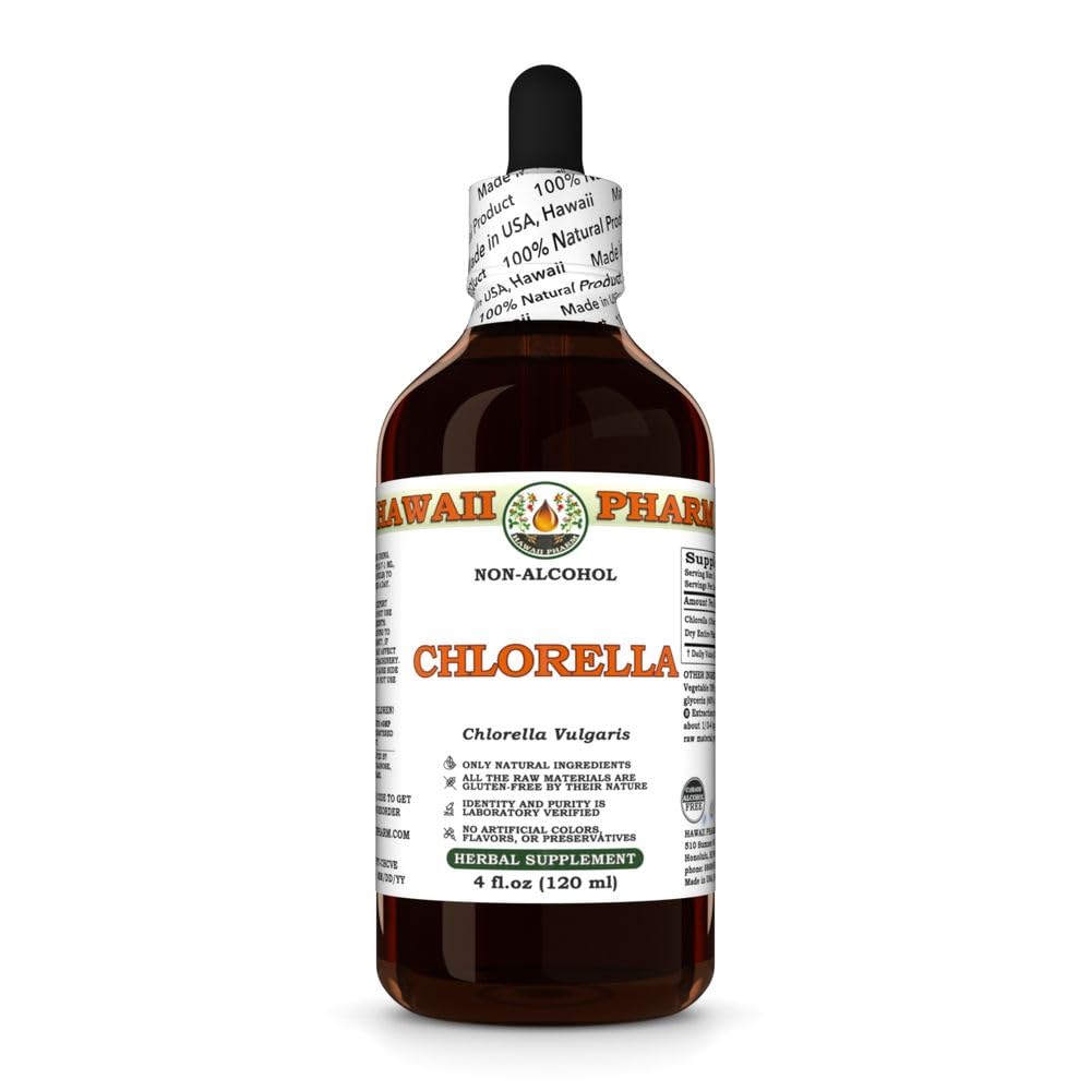 Made in the USA with Superior Quality: Proudly crafted in the USA (Hawaii), our Chlorella Extract uses select, high-quality ingredients sourced from trusted suppliers. Each batch undergoes rigorous laboratory testing to ensure it meets the highest standards of safety and potency. By choosing Hawaii Pharm, you are supporting American-made products and a brand dedicated to delivering the best in herbal extracts. 100 Natural, Alcohol-Free Pure: Trust in Hawaii Pharm's commitment to excellence. Our Chlorella Extract is a 100 natural, alcohol-free product, free from additives, colorants, flavorings, and sugars. This ensures you receive the purest form of the herb without any unwanted ingredients. Our rigorous quality control measures guarantee the highest standards of purity and effectiveness, providing you with a product you can trust. Superior Absorption and Easy Use: Our liquid Chlorella Extract offers superior absorption compared to tablets and capsules, ensuring your body quickly and fully benefits from its calming properties. Easy to use, simply mix it with water or your favorite beverage for convenient consumption. This makes it an ideal choice for those seeking quick and efficient results without the hassle of swallowing pills. Promotes Heart, Respiratory, and Energy Balance: Known for its potent antioxidant properties, Chlorella Extract contains compounds like chlorophyll, vitamin C, and beta-carotene that help protect cells from oxidative challenges. It's also been studied for its role in supporting respiratory comfort, blood pressure balance, and aerobic endurance, making it a versatile addition to daily wellness routines. Supports Immune Function and Vitality: Chlorella Extract is widely appreciated for its role in promoting a balanced and responsive immune system. Rich in nutrients and bioactive compounds, this botanical helps support the body's natural defenses, making it a trusted choice for overall vitality and wellness.