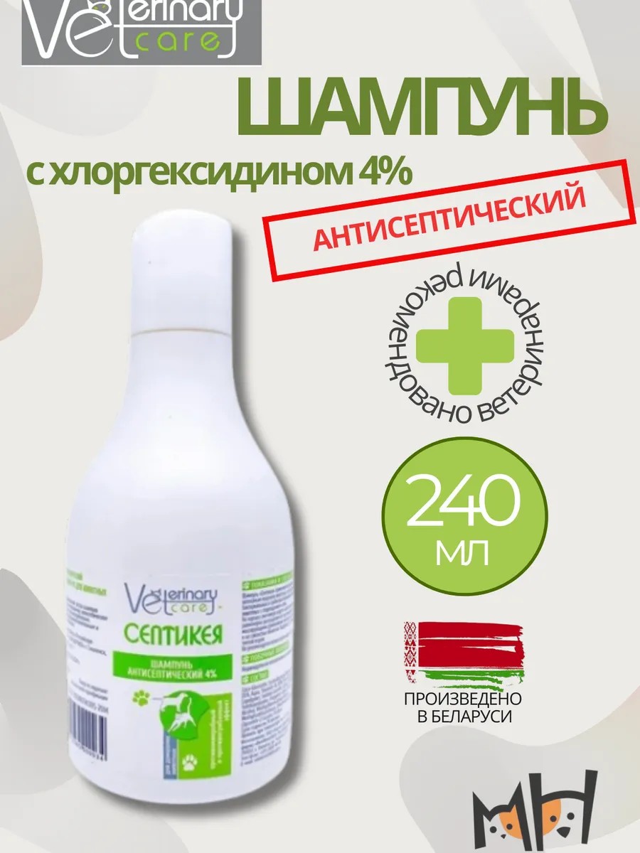 Формула шампуня серии "Септикея", содержащая хлоргексидин 4%, обладает мощным антисептическим и противоспалительным действием, что делает его идеальным выбором для профилактики бактериальных и грибковых инфекций.
