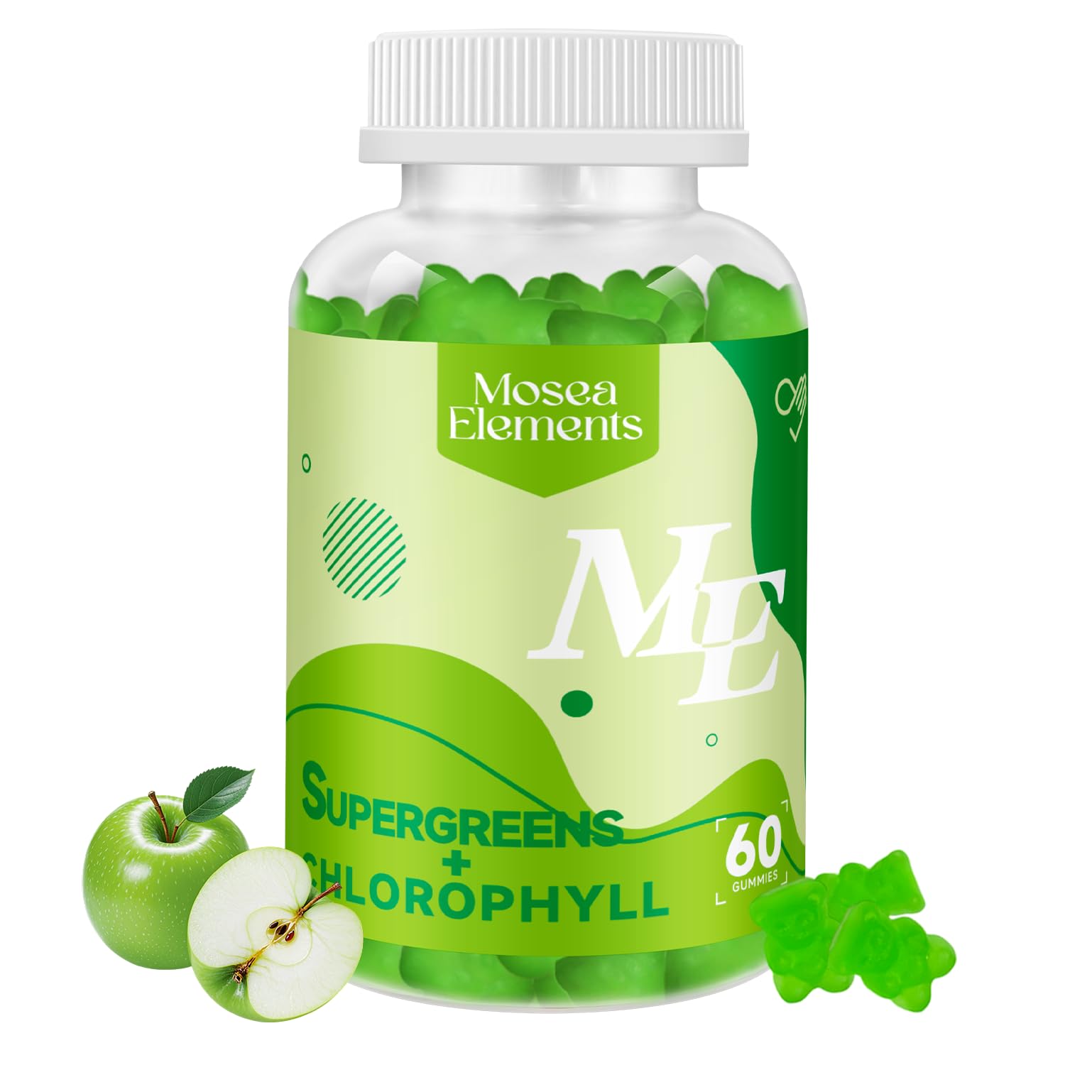 Health from within made simple with Supergreens: Introducing an easy and delicious way to incorporate vitamins and minerals into your daily routine. Our unique blend contains essential nutrients that help support overall health and wellbeing. Formulated to Fit Your Life: Designed for convenience, our gummies are a tasty alternative to pills or capsules. Easily incorporate them into your daily routine for consistent nutritional support. Whether at home or on the go, enjoy the delightful flavor and comprehensive benefits of our nutrient-rich gummies anytime, anywhere. Unique Chlorophyll Formula: Our Chlorophyll Gummies are a rich source of vital nutrients, crafted with mulberry leaf extract, spirulina, chlorella, and essential vitamins (D3, C, E, B12) plus zinc. This advanced formula supports immunity, enhances skin and digestive health, and aids in body odor cleansing. Each gummy delivers a balanced blend of nutrients to keep you energized and refreshed. Plant-based, Vegan, Gluten-free Gelatin-free: Each bottle of Supergreens Gummies contains 60 delicious vegan, gluten-free, gelatin-free gummies. Sugar-Free: Enjoy one soft, chewy gummy daily, infused with a refreshing Green Apple flavor and absolutely no added sugar. Savor the taste without guilt, knowing this zero-sugar snack supports your wellness goals. Stay on track with a delicious treat that's free from unnecessary sweets.