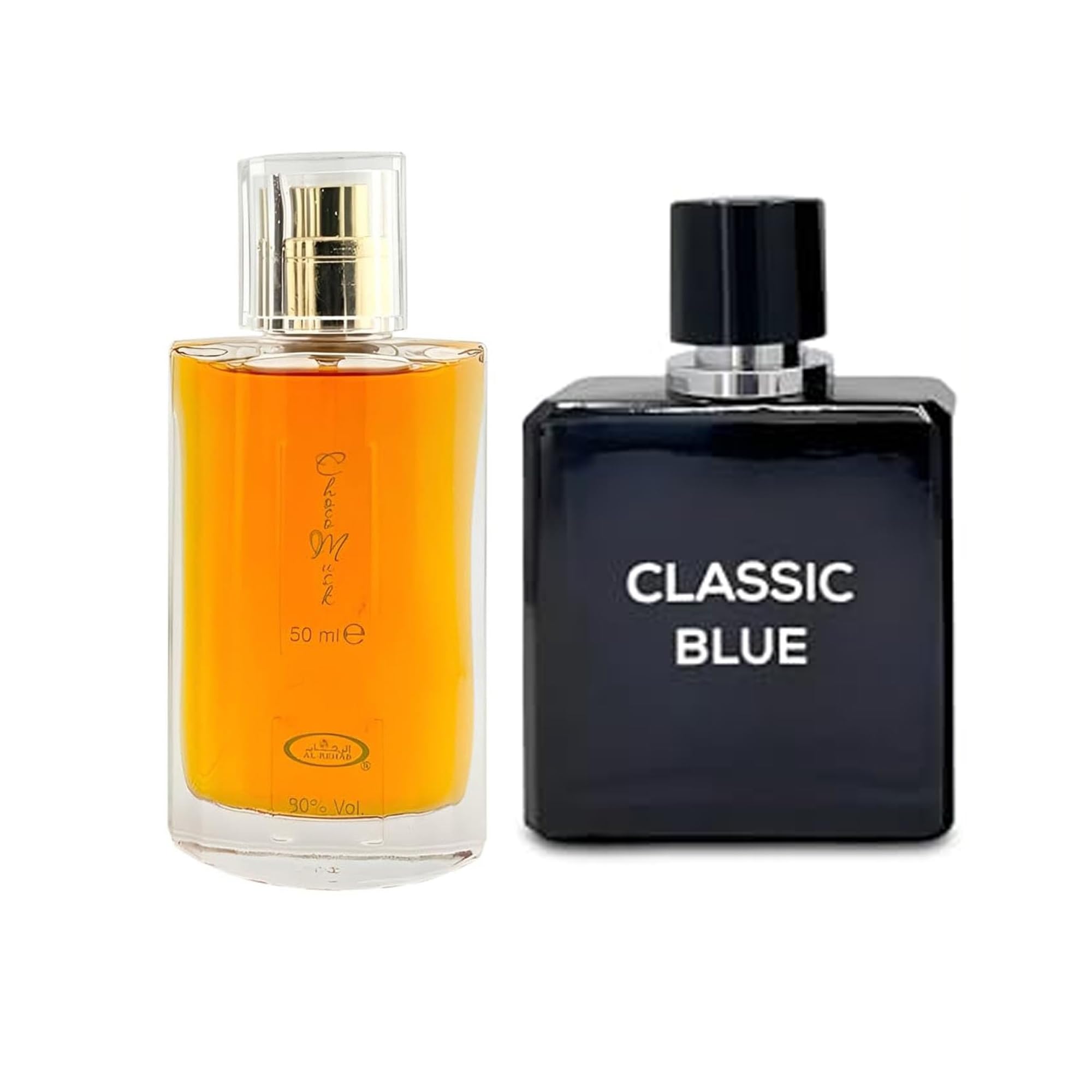 Choco Musk&Classic Blue Men s Cologne-Rich Chocolate & Musk Eau De Toilette Long-Lasting Scent Perfume for Men Elegant Bottle 3.4 Fl Oz Fragrance for Refined Occasions Choco Musk&Classic Blue 2.53 Fl Oz (Pack of 2)