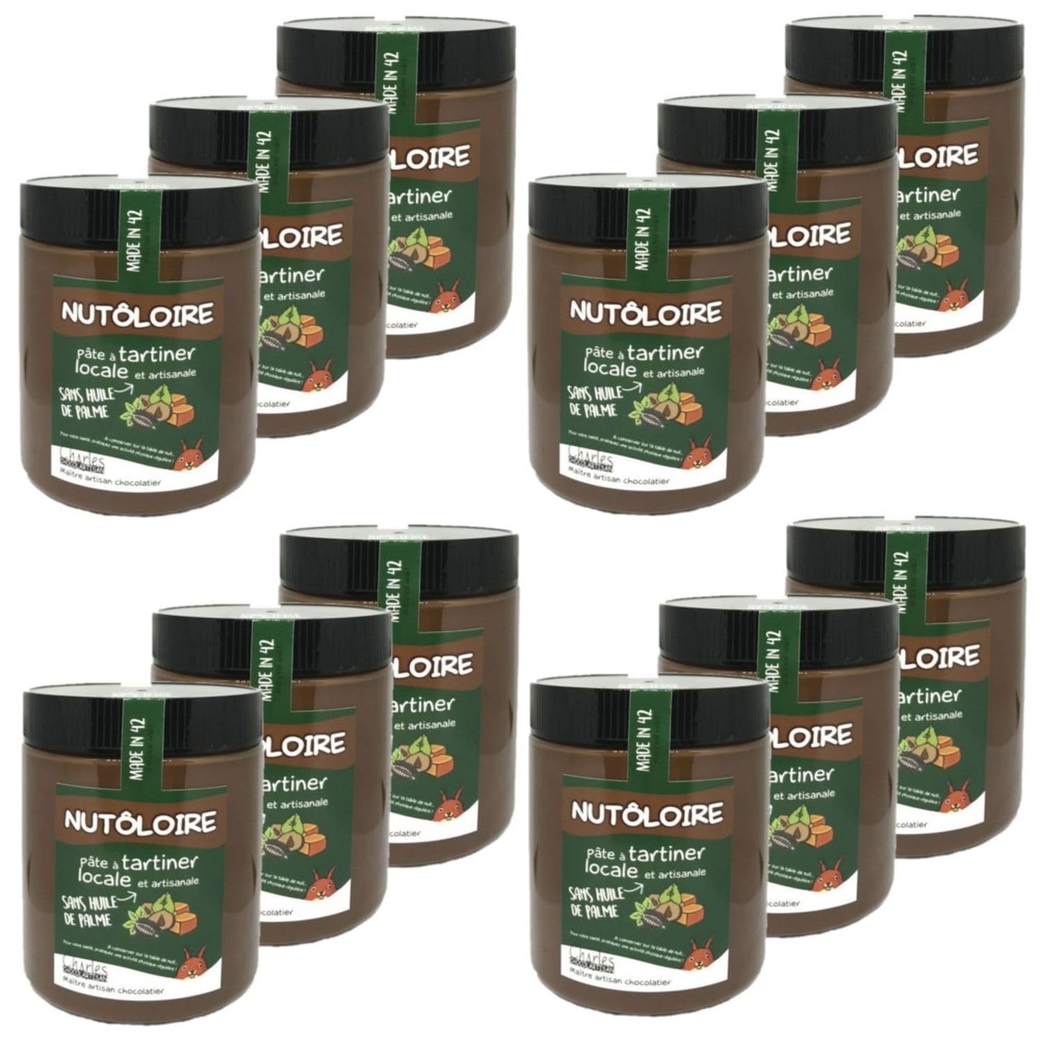 This pack contains 12 products described below: Nutôloire is much more than a spread: it's a declaration of love for local and artisanal flavors. With its homemade sweetened cocoa (34 ), its hand-roasted hazelnuts (13 ), and its melt-in-your-mouth Loire Valley caramel (7 ), this recipe combines authenticity, regional expertise, and pure indulgence. All enhanced with a touch of Madagascar vanilla and guaranteed palm oil-free—because you can be both a foodie and committed to sustainability! Ingredients: Cocoa powder (sugar, fat-reduced cocoa, cocoa butter), sunflower oil, skimmed milk powder, roasted hazelnuts from Civens (13 ), Loire Valley caramel powder (7 ) (sugar, glucose syrup, butter, cream). An emulsifier: sunflower lecithin. And Madagascar vanilla extract. Allergens: Peanuts, Tree nuts, Milk Storage instructions: Store at room temperature, away from heat and humidity, before opening. Usage suggestions: In baking: Use as a filling for tarts, a sponge cake filling, or as a surprise center in homemade cookies. Product information: Net weight: 570g Origin: France Energy: 2450kJ 590kcal Fat: 43g, of which saturates 7.8g Carbohydrate: 41g, of which sugars 38g Protein: 8.6g Dietary fiber: 4.1g Salt: 0.15g Packaging: Plastic tub Full details are available on the product packaging. The information on this page is for guidance only. We encourage you to read the information on the product label, especially regarding food allergies.Lot 12x Pâte à tartiner noisette et caramel Nutôloire - Pot 570g Lot de 12DESCRIPTION DU PRODUIT Ce lot contient 12 produits décrits ci-dessous : Nutôloire, c'est bien plus qu'une pâte à tartiner : c'est une déclaration d'amour aux saveurs locales et artisanales. Avec son cacao sucré maison (34? ), ses noisettes torréfiées artisanalement (13? ), et son caramel fondant de la Loire (7? ), cette recette allie authenticité, savoir-faire régional et gourmandise absolue. Le tout relevé par une touche de vanille de Madagascar et garanti sans huile de palme — parce qu'on peut être gourmand et engagé ! Ingrédients : Du chocolat en poudre (sucre, cacao maigre, beurre de cacao), de l'huile de tournesol, du LAIT écrémé en poudre, des NOISETTES torréfiées à Civens 13 , du caramel en poudre de la Loire 7 (sucre, sirop de glucose, BEURRE, CREME). Un émulsifiant : de la lécithine de tournesol. Et de l'extrait de vanille de Madagascar. Allergènes : Arachide Fruit à coque Lait Mode de conservation : A conserver à température ambiante, à l'abri de la chaleur et de l'humidité avant ouverture. Conseil d'utilisation : En pâtisserie : à utiliser comme garniture de tartes, fourrage pour moelleux, ou en cœur surprise dans des cookies maison. Informations produit : Poids net : 570g Origine : France Energie : 2450KJ 590Kcal Lipides : 43g dont acides gras saturés 7,8g Glucides : 41g dont sucres 38g Protéines : 8,6g Fibres alimentaires : 4,1g Sel : 0,15g Emballage : Pot en Plastique Détail complet et disponible sur l'emballage du produit. Les informations présentes sur cette page sont à titre indicatif. Nous vous invitons à prendre connaissance des informations sur l'étiquette du produit, en particulier concernant les allergies alimentaires.