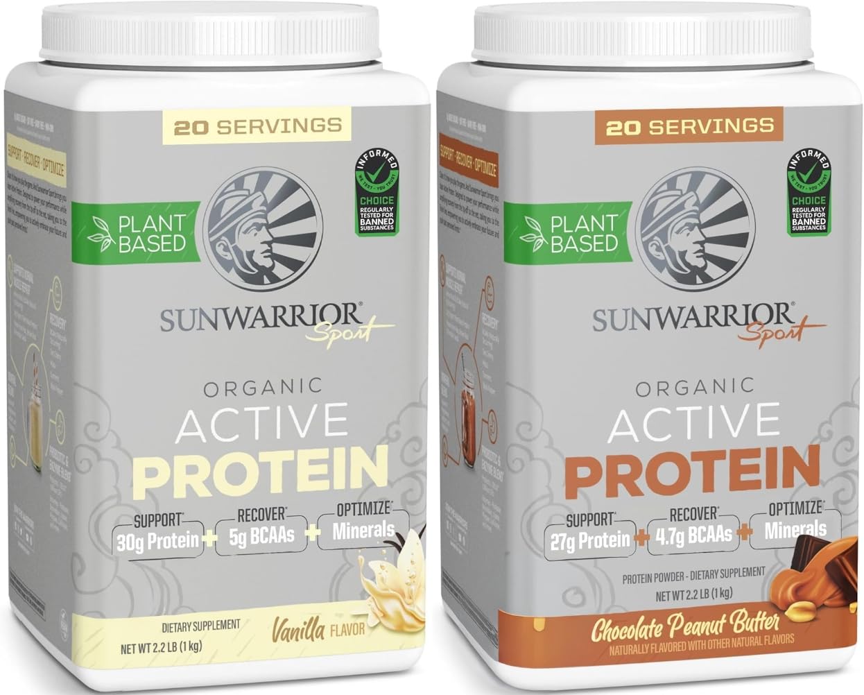 Chocolate Peanut Butter & Vanilla Active Organic Protein Powder Set | Bundle & Save | Vegan Protein Powder | Non-GMO Soy Dairy & Gluten Free (20 Servings Vanilla 20 Servings Chocolate Peanut Butter)