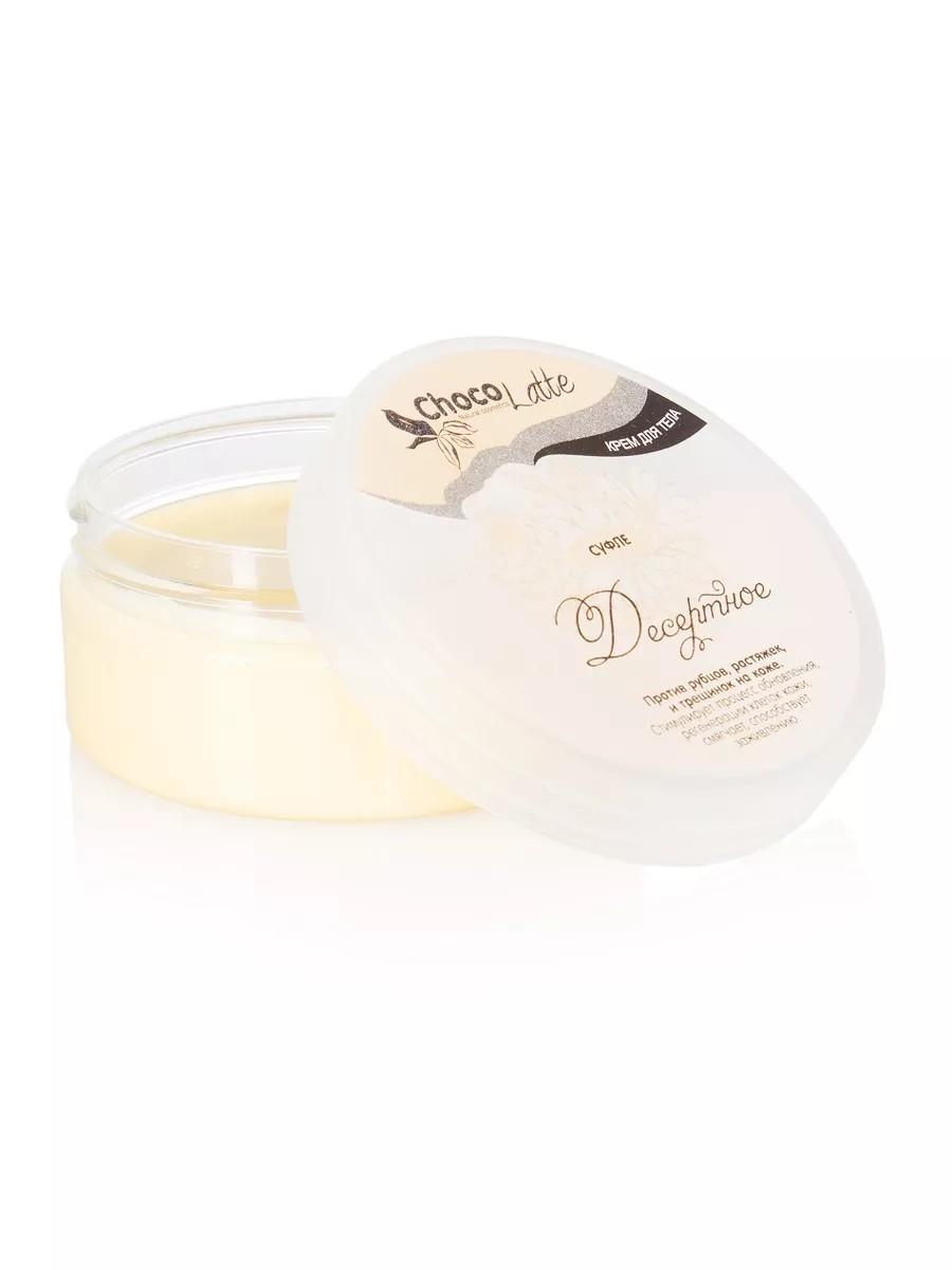 СУФЛЕ для тела ДЕСЕРТНОЕ от рубцов, растяжек и трещинок на коже — натуральный питательный крем, смесь целебных масел с экстрактом ламинарии и комплексом эфирных масел. Имеет нежную консистенцию взбитого сливочного крема и дарит ненавязчивый, теплый аромат с оттенком свежей зелени.