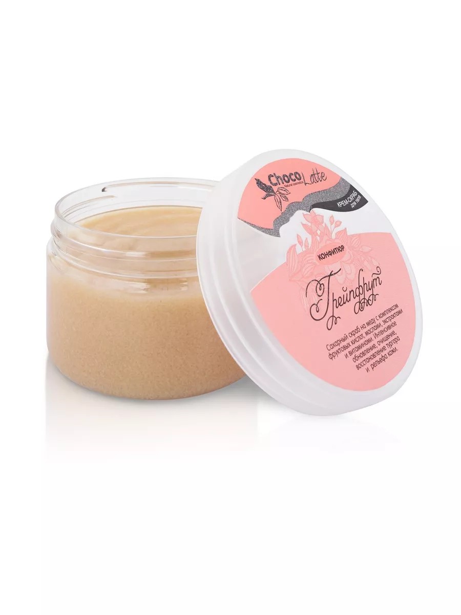 КОНФИТЮР для тела ГРЕЙПФРУТ ТМ Шоколатте - сахарный скраб на меду с комплексом фруктовых кислот, маслами, экстрактами и витаминами для интенсивного обновления, очищения, восстановления тургора и рельефа кожи.