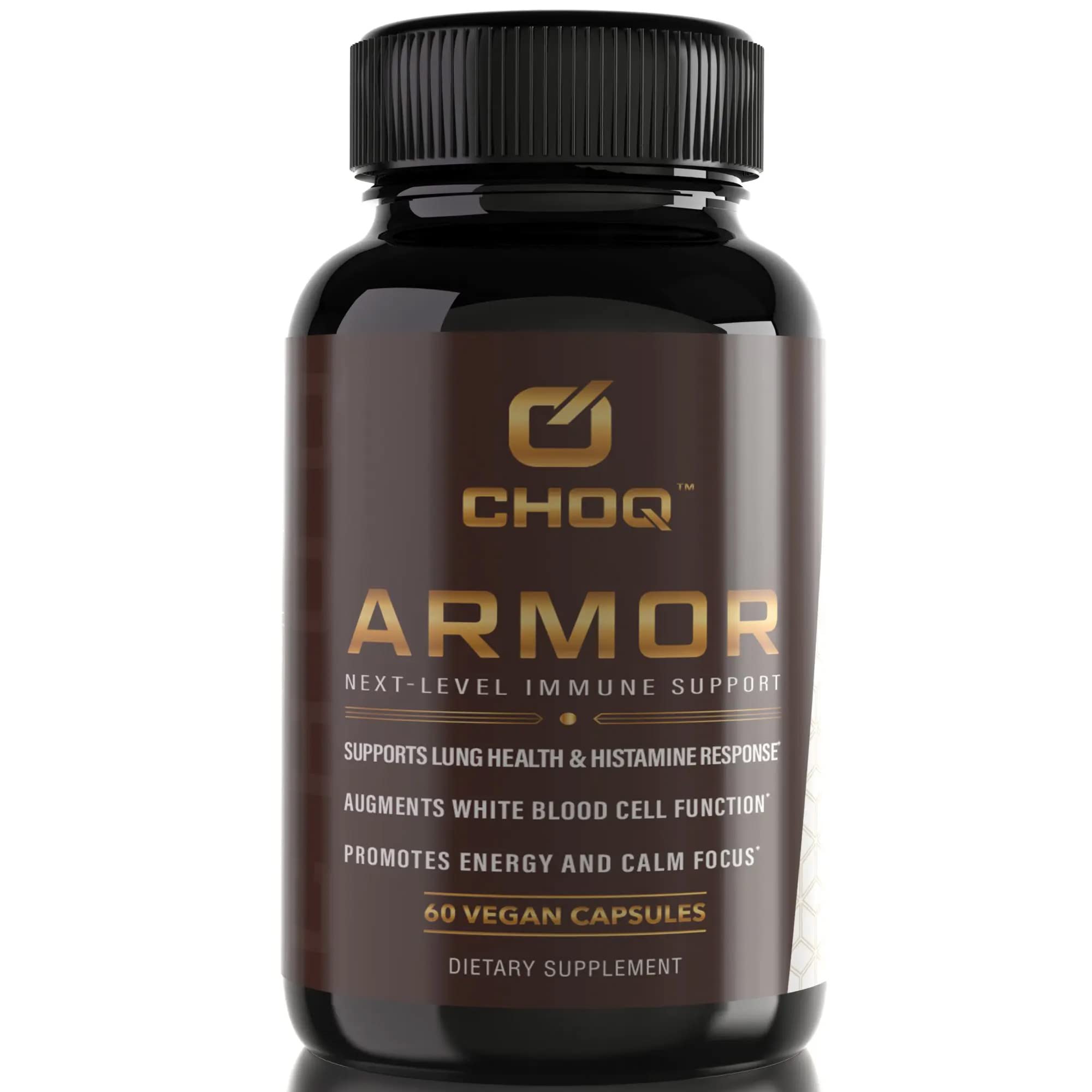 THE CHOQ PROMISE: Our supplements are all third party tested for purity and potency. We only use transparent labeling with research-backed ingredients. Our products are expertly formulated, bioavailable, lab-verified supplements. ARMOR SUPPORTS: Healthy histamine levels respiratory function, White Blood Cell function, Healthy inflammation response, Healthy stress response, Post-workout recovery, and Calm focus. SERIOUS IMMUNE Support: A world-class immuno-adaptogen with a plethora of side benefits, including powerful support for healthy histamine levels, CHOQ Armor features a unique 20x absorption Quercetin Phytosome, Organic Astragalus, and Organic Andrographis Paniculata. The Quercetin in CHOQ Armor also makes it an ideal solution for healthy energy levels (ATP), liver function, and detoxification.