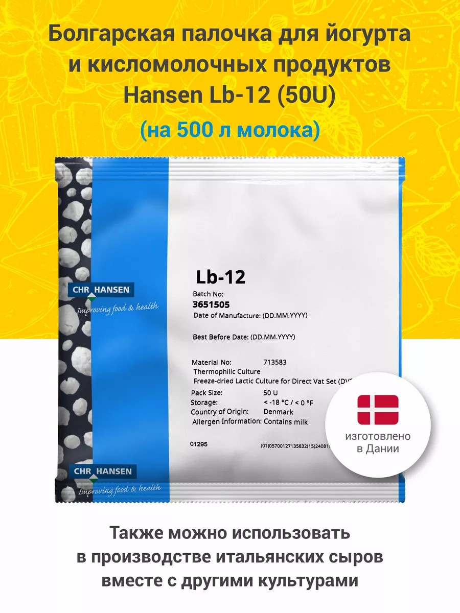 Chr Hansen Болгарская палочка для йогурта и сыра Hansen Lb-12, 50U