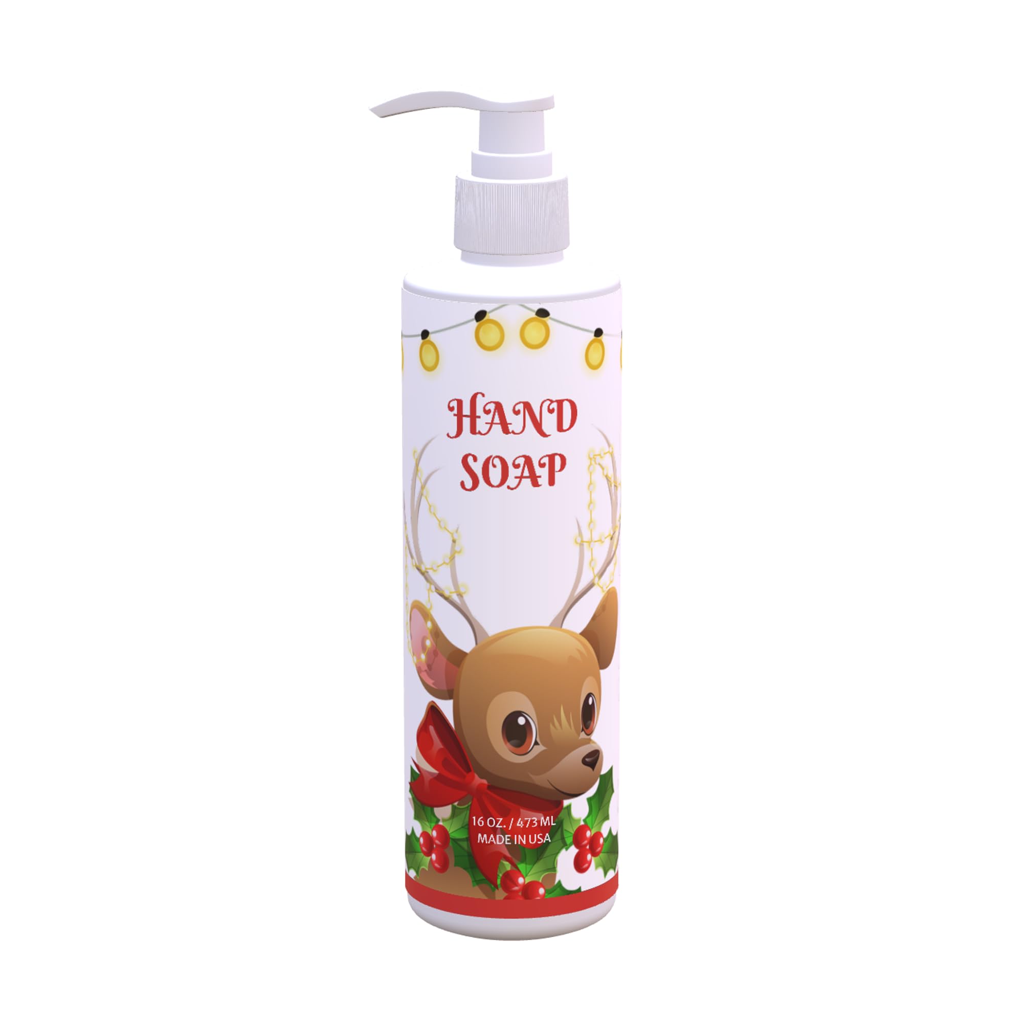 Bring christmas magic to your sink with our Deer Lights hand soap. This magical design features a majestic reindeer silhouette wrapped in sparkling string lights, capturing the spirit of christmas and inviting warm smiles each time you wash your hands. The crisp scent of fresh green tea lemon greets you with every pump. We've formulated our soap to be gentle on skin and kind to the planet. Each 16 oz bottle is made from recyclable HDPE plastic and is filled with a paraben-free, sulfate-free formula infused with botanical extracts. We avoid harsh chemicals, artificial dyes, phthalates and synthetic colors, so your guests can enjoy a clean experience without compromise. The easy-to-use pump dispenses just the right amount of silky lather, leaving hands refreshed and lightly scented. This festive bottle is perfect for rustic cabins, ski lodges, and cozy winter homes. Keep one by the kitchen sink to spread holiday cheer as you cook and bake, or place a pack in guest bathrooms to impress visiting family and friends. Many of our customers also choose these bottles as thoughtful gifts for teachers, coworkers and holiday party hosts the Deer Lights artwork looks beautiful wrapped or placed in a gift basket. Every bottle is proudly filled and printed in the USA in a GMP-compliant facility, ensuring premium quality and fast turnaround. HotelSoap.com's craftsmanship combines high-quality ingredients with custom design, so your seasonal décor feels both special and professional. Celebrate the season with a soap that looks as lovely as it feels. For external use only.PREMIUM QUALITY – Crafted by HotelSoap.com in a GMP-compliant facility, using eco-friendly packaging and high-quality ingredients, our soap elevates any space with luxurious craftsmanship. HOLIDAY DÉCOR – Perfect for rustic cabins, ski lodges, and cozy winter homes, this christmas soap adds seasonal charm to bathrooms, kitchens and guest suites, and makes a thoughtful gift for hosts, teachers and friends. SIZE PACK OPTIONS – Each 16 oz bottle is available individually or in convenient 4- or 12-pack sets so you can stock single bathrooms, vacation rentals or busy households. Perfect for home, office or travel. LUXE GENTLE – Infused with the fresh scent of green tea lemon, our soap is paraben-free and sulfate-free, housed in a recyclable HDPE pump bottle and proudly made in the USA. Designed for every skin type. MAGICAL DEER LIGHTS DESIGN – This magical design showcases a majestic reindeer silhouette wrapped in sparkling string lights, bringing christmas charm to bathrooms and kitchens and delighting guests of all ages.