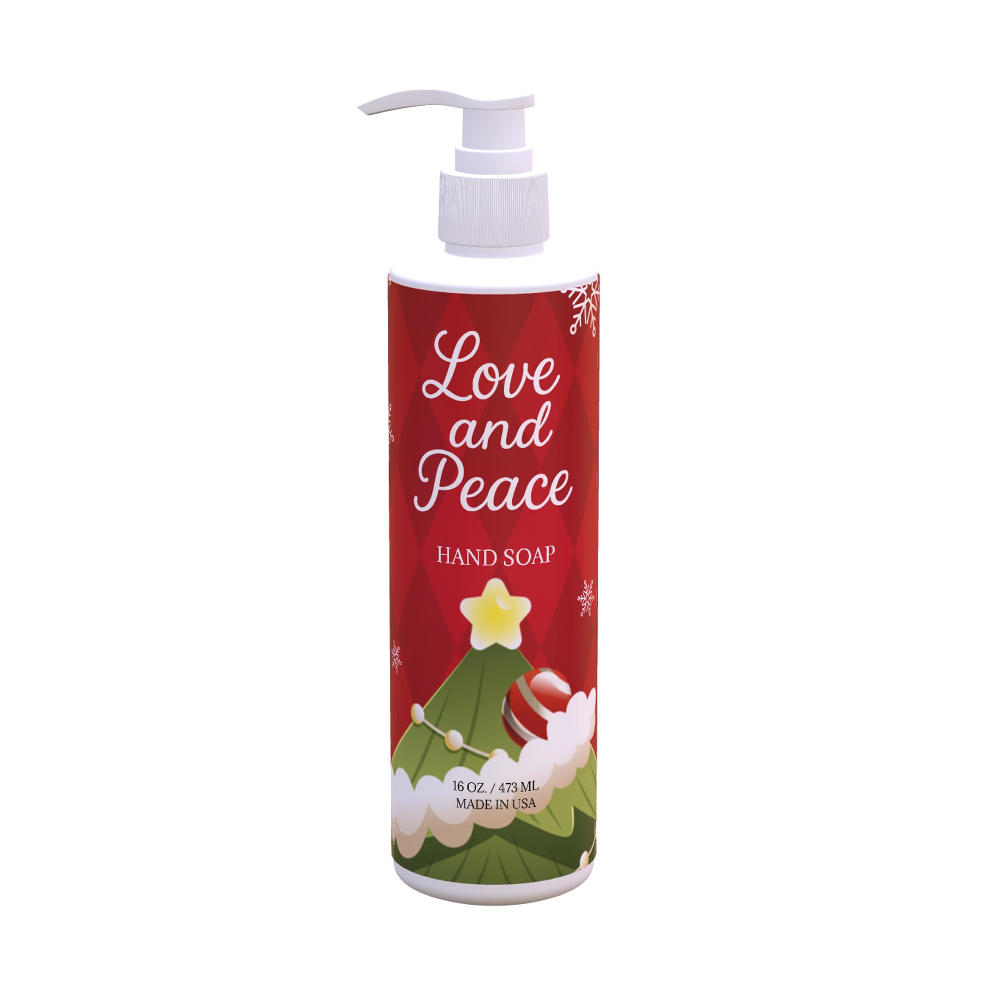 Bring christmas magic to your sink with our LovePeace hand soap. This heartwarming design features a heartwarming 'Love Peace' message with delicate snowflakes and holiday motifs, capturing the spirit of christmas and inviting warm smiles each time you wash your hands. The crisp scent of fresh green tea lemon greets you with every pump. We've formulated our soap to be gentle on skin and kind to the planet. Each 16 oz bottle is made from recyclable HDPE plastic and is filled with a paraben-free, sulfate-free formula infused with botanical extracts. We avoid harsh chemicals, artificial dyes, phthalates and synthetic colors, so your guests can enjoy a clean experience without compromise. The easy-to-use pump dispenses just the right amount of silky lather, leaving hands refreshed and lightly scented. This festive bottle is perfect for guest bathrooms, yoga studios, and holiday gatherings. Keep one by the kitchen sink to spread holiday cheer as you cook and bake, or place a pack in guest bathrooms to impress visiting family and friends. Many of our customers also choose these bottles as thoughtful gifts for teachers, coworkers and holiday party hosts the LovePeace artwork looks beautiful wrapped or placed in a gift basket. Every bottle is proudly filled and printed in the USA in a GMP-compliant facility, ensuring premium quality and fast turnaround. HotelSoap.com's craftsmanship combines high-quality ingredients with custom design, so your seasonal décor feels both special and professional. Celebrate the season with a soap that looks as lovely as it feels. For external use only.PREMIUM QUALITY – Crafted by HotelSoap.com in a GMP-compliant facility, using eco-friendly packaging and high-quality ingredients, our soap elevates any space with luxurious craftsmanship. HOLIDAY DÉCOR – Perfect for guest bathrooms, yoga studios, and holiday gatherings, this christmas soap adds seasonal charm to bathrooms, kitchens and guest suites, and makes a thoughtful gift for hosts, teachers and friends. SIZE PACK OPTIONS – Each 16 oz bottle is available individually or in convenient 4- or 12-pack sets so you can stock single bathrooms, vacation rentals or busy households. Perfect for home, office or travel. LUXE GENTLE – Infused with the fresh scent of green tea lemon, our soap is paraben-free and sulfate-free, housed in a recyclable HDPE pump bottle and proudly made in the USA. Designed for every skin type. HEARTWARMING LOVEPEACE DESIGN – This heartwarming design showcases a heartwarming 'Love Peace' message with delicate snowflakes and holiday motifs, bringing christmas charm to bathrooms and kitchens and delighting guests of all ages.