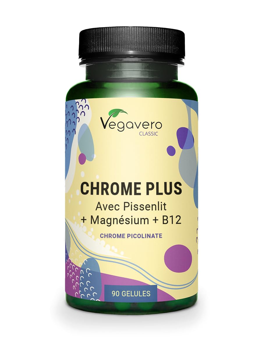 ALWAYS BY YOUR SIDE: Taking care of you is part of our philosophy. That's why, in addition to developing supplements tailored to your needs, we research unique formulations to achieve the perfect synergy of ingredients and dosages. We are at your disposal to advise and support you in achieving your goals, to provide you with certificates of analysis for our products and to answer all your questions. Contact us! OPTIMAL QUALITY: Our "Chromium Plus" product is manufactured according to the strictest HACCP quality standards. Unlike other suppliers of chromium gtf or chromium ampoules, we test our capsules not only for microbial impurities, but also for heavy metal residues and active ingredients. Of course, our product is GMO-free, free of any additives and suitable for vegans. Per bottle: 90 capsules (3 months supply). EFFECTIVE COMBINATION: Our product also contains magnesium in the form of magnesium bisglycinate, as well as vegan vitamin B12 (bioactive methylcobalamin). These nutrients also participate in energy metabolism, help reduce fatigue and are therefore an ideal complement to chromium. The combination is completed with a dandelion root extract (10:1), a source of flavones. Ideal for a sugar detox and regulating appetite and hunger (anti-cravings). ✓ HIGHLY DOSED: Our Chrome Plus provides a high dose of 250 µg of chromium per capsule. We rely on two forms to ensure high bioavailability: chromium picolinate, as well as the Lynside brand raw material, an inactive yeast enriched with chromium. Chromium is one of the trace elements and plays a role in the metabolism of macronutrients such as carbohydrates, and contributes to the maintenance of normal blood sugar (glucose levels).TOUJOURS A VOS CÔTÉS : Prendre soin de vous fait partie de notre philosophie. C'est pourquoi, en plus de développer des compléments adaptés à vos besoins, nous recherchons des formulations uniques afin d'obtenir la parfaite synergie d'ingrédients et de dosages. Nous sommes à votre disposition pour vous conseiller et vous soutenir dans l'atteinte de vos objectifs, pour vous fournir les certificats d'analyse de nos produits et pour répondre à toutes vos questions. Contactez-nous !. QUALITÉ OPTIMALE : Notre produit « Chromium Plus » est fabriqué selon les normes de qualité HACCP les plus strictes. Contrairement à d'autres fournisseurs de chrome gtf ou d'ampoule de chrome, nous testons nos gélules non seulement sur les impuretés microbiennes, mais aussi sur les résidus de métaux lourds et les ingrédients actifs. Bien entendu, notre produit est exempt d'OGM, de tout additif et convient aux végétaliens. Par flacon : 90 gelules (3 mois d'approvisionnement). COMBINAISON EFFICACE : Notre produit contient également du magnésium sous forme de magnesium bisglycinate, ainsi que de la vitamine B12 vegan (methylcobalamin bioactive). Ces nutriments participent également au métabolisme énergétique, contribuent à réduire la fatigue et sont donc un complément idéal au chrom. La combinaison est complétée par un extrait (10:1) de pissenlit (dandelion root), source de flavones. Idéal pour une détox sucre et réguler l'appétit et la faim (anti fringale). ✓ HAUTEMENT DOSÉ : Notre Chrome Plus fournit une dose élevée de 250 µg de chrome par gélule. Nous misons sur deux formes pour garantir une biodisponibilité élevée : le picolinate de chrome (chromium picolinate), ainsi que la matière première de marque Lynside , une levure inactive enrichie en chrome. Le chrome fait partie des oligo-éléments et joue un rôle dans le métabolisme des macronutriments tels que les glucides, et contribue au maintien d'une glycémie normale (taux de glucose).