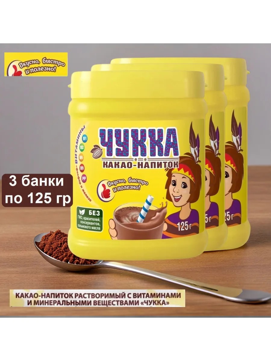 Какао Чукка 3 банки по 125 грамм каждая это энергия и вкус в каждой чашке!